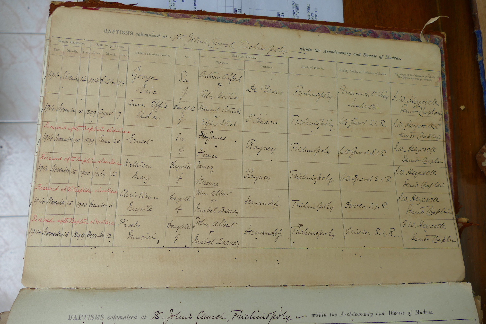 View source information (St Johns Church Trichinopoly - Baptismal Registers)