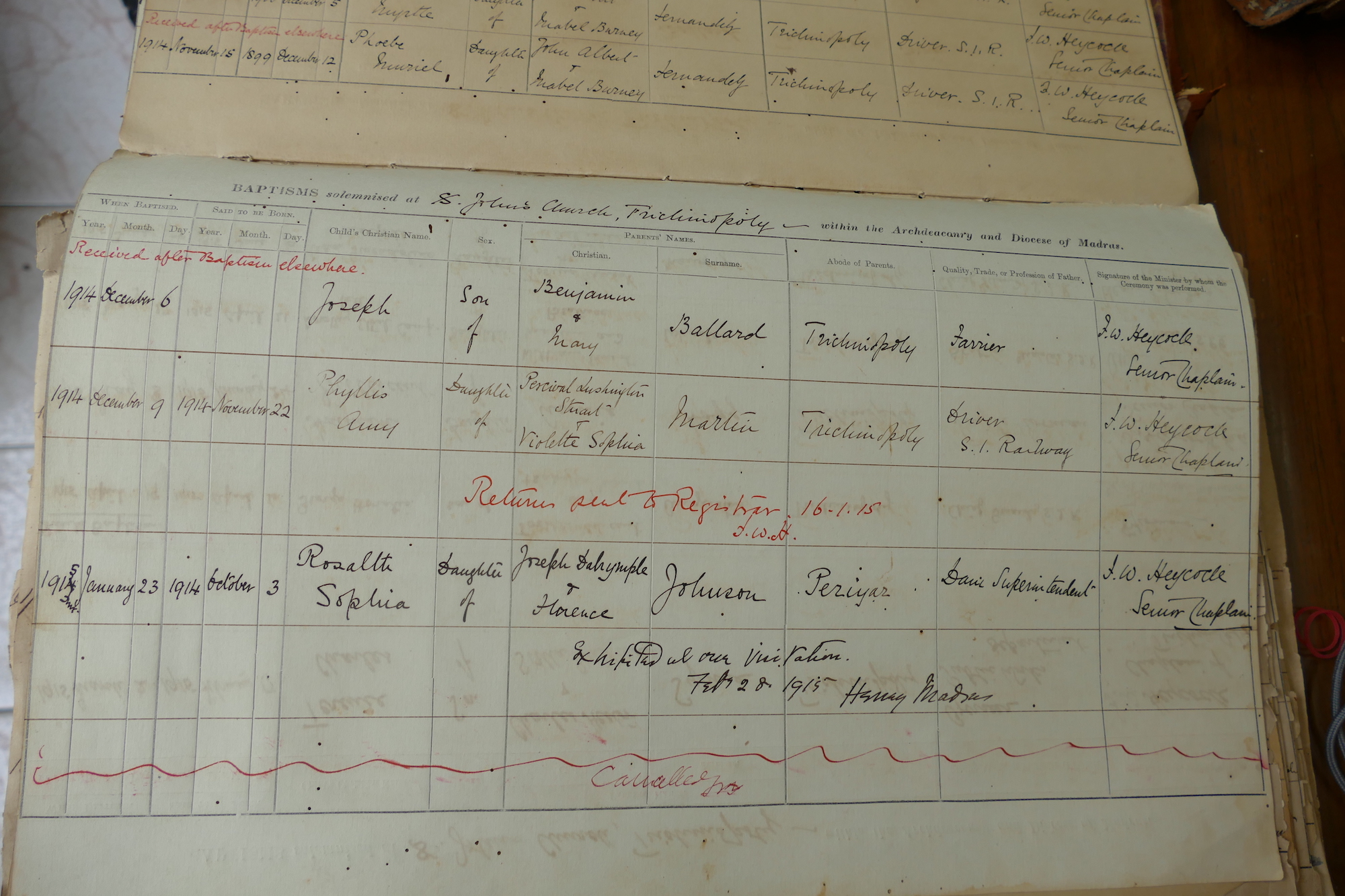 View source information (St Johns Church Trichinopoly - Baptismal Registers)