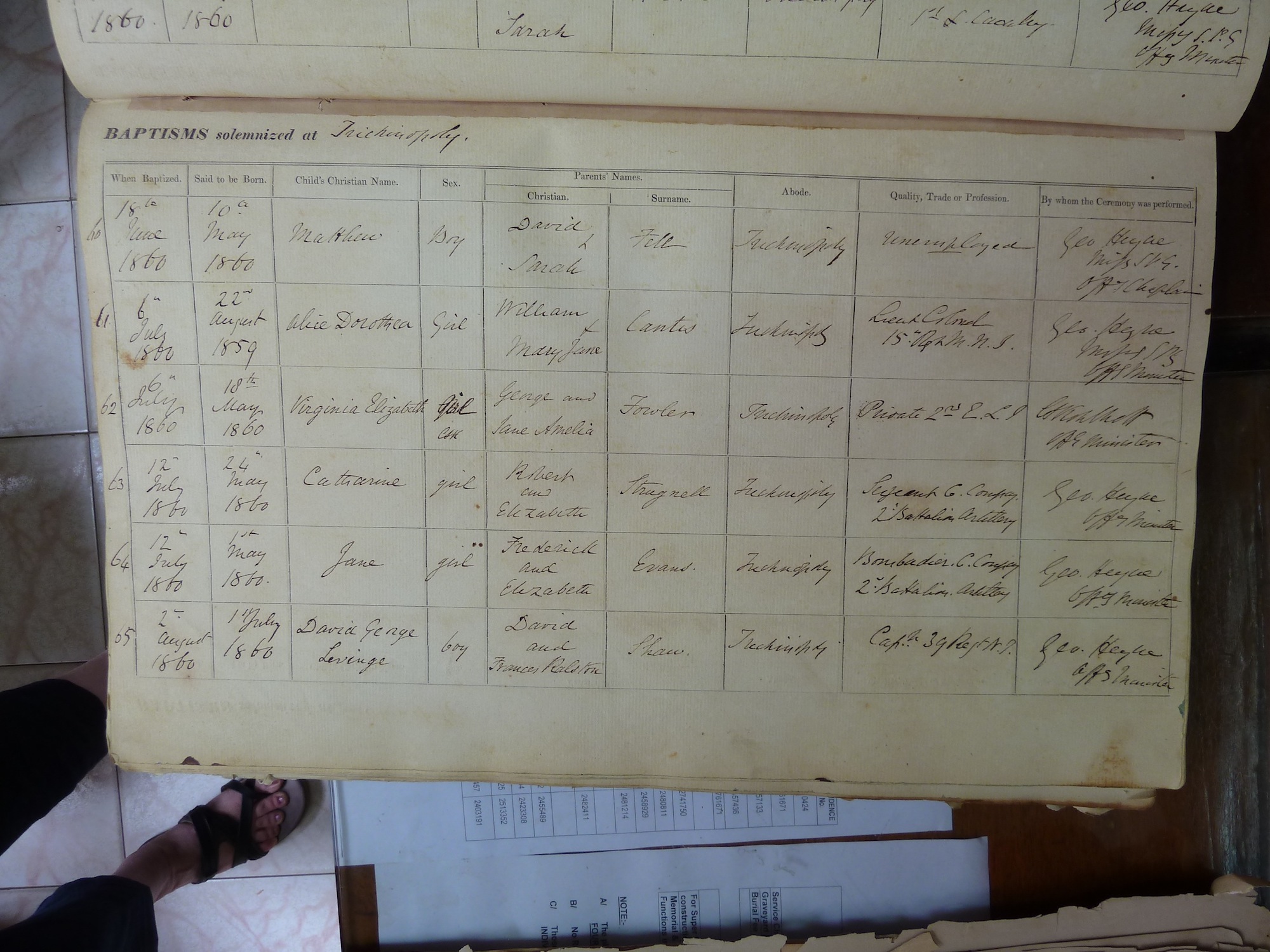 View source information (St Johns Church Trichinopoly - Baptismal Registers)
