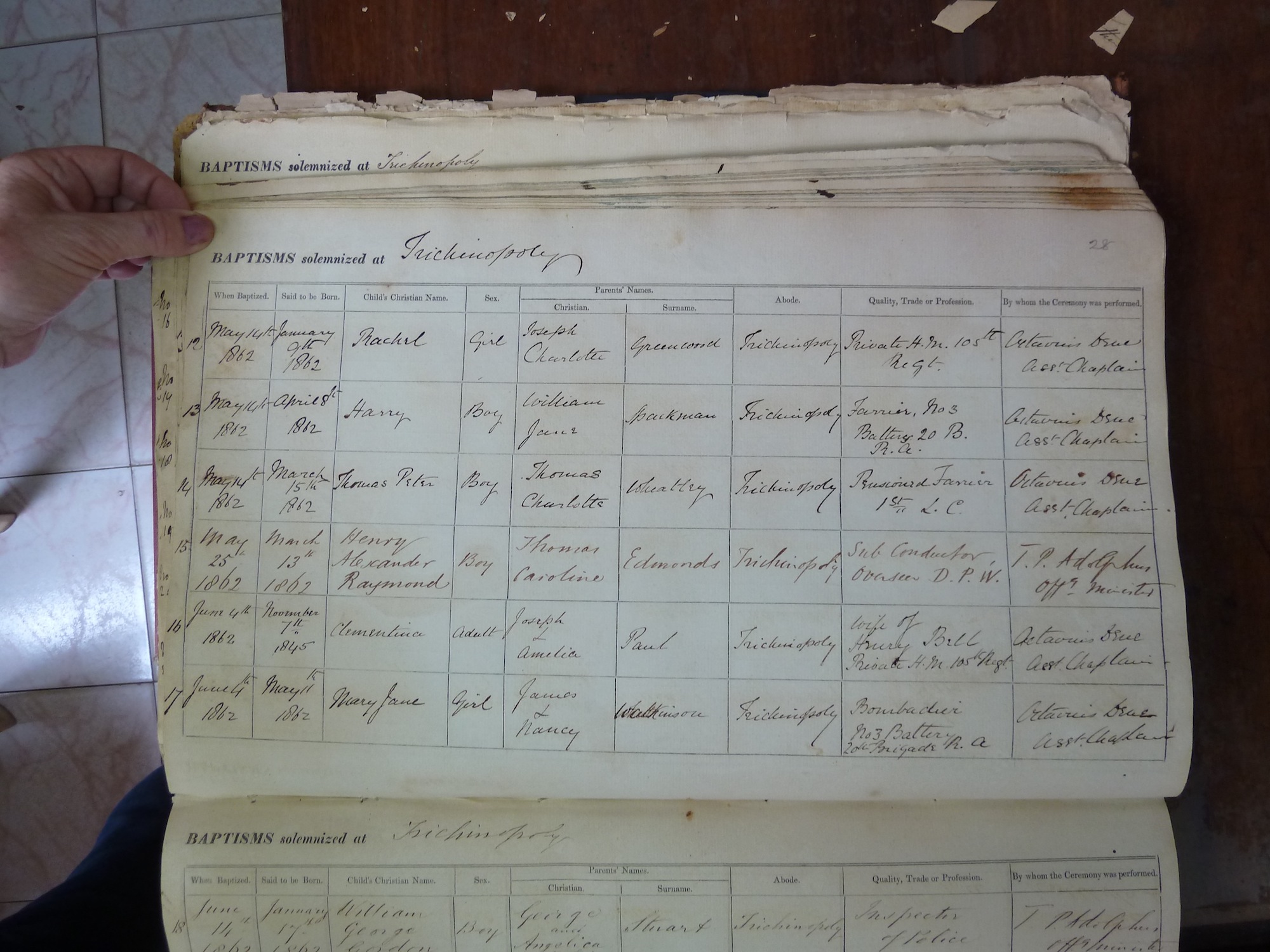 View source information (St Johns Church Trichinopoly - Baptismal Registers)