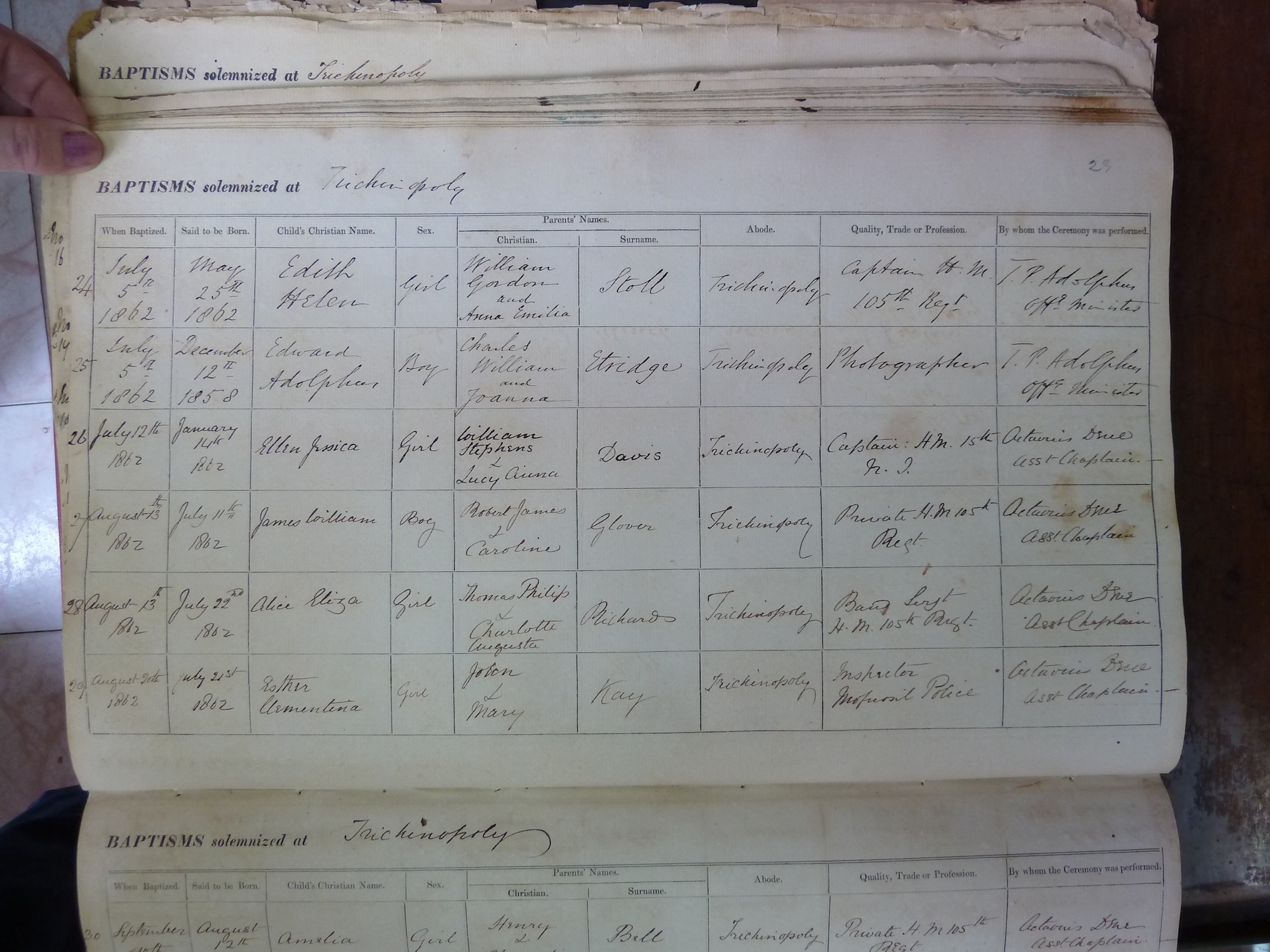 View source information (St Johns Church Trichinopoly - Baptismal Registers)