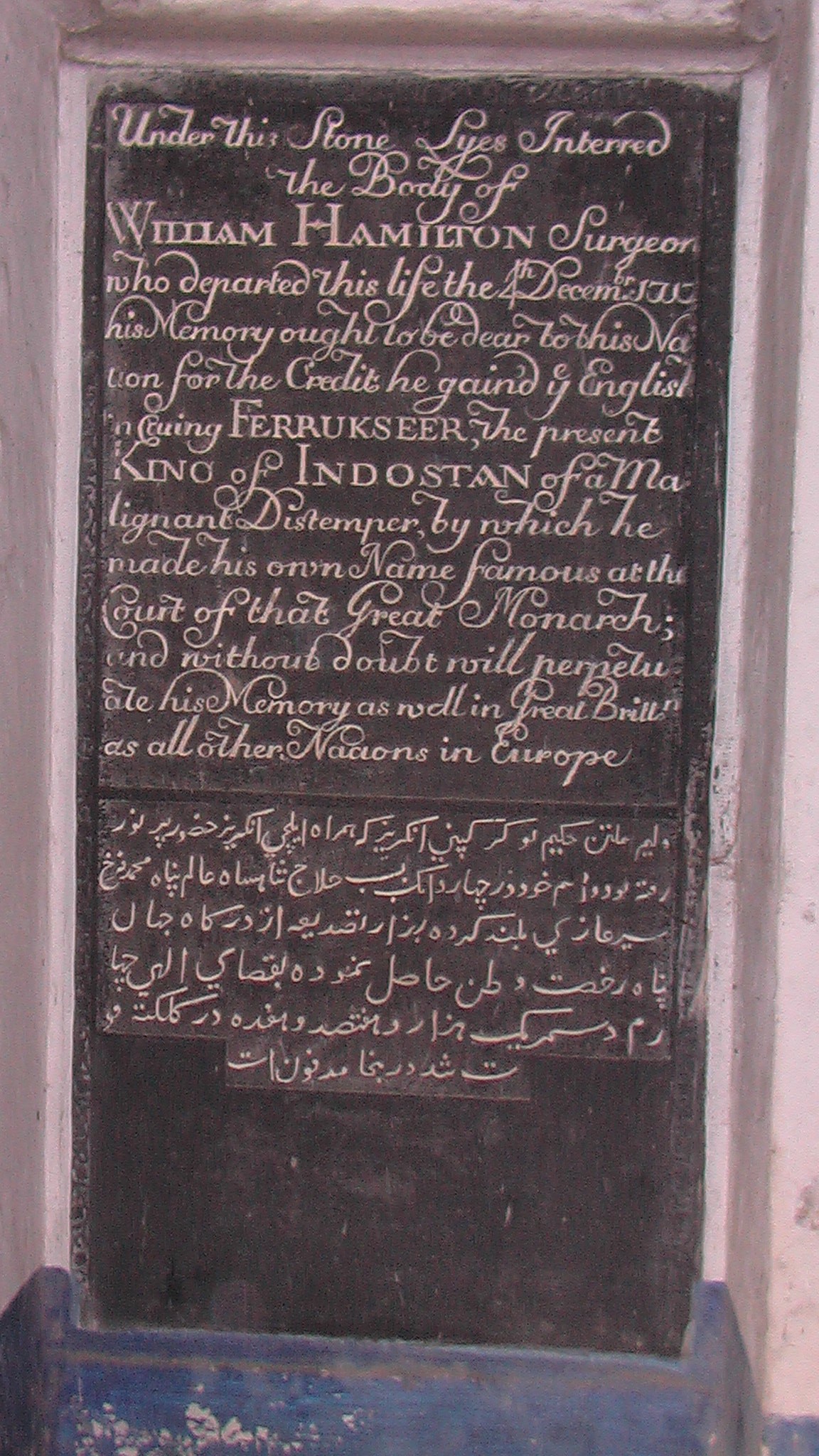 Memorial to Surgeon William Hamilton (d. 1700) in St. John's Churchyard, Calcutta