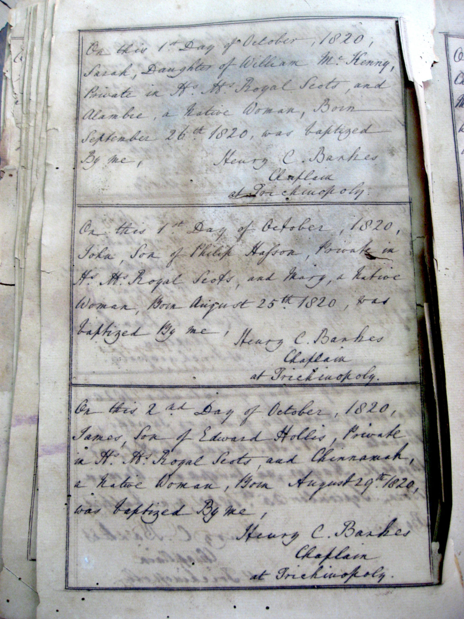 St Johns Church Baptism Register 1810-1827 images - Trichy-St-Johns1820-Baptisms-19.jpg