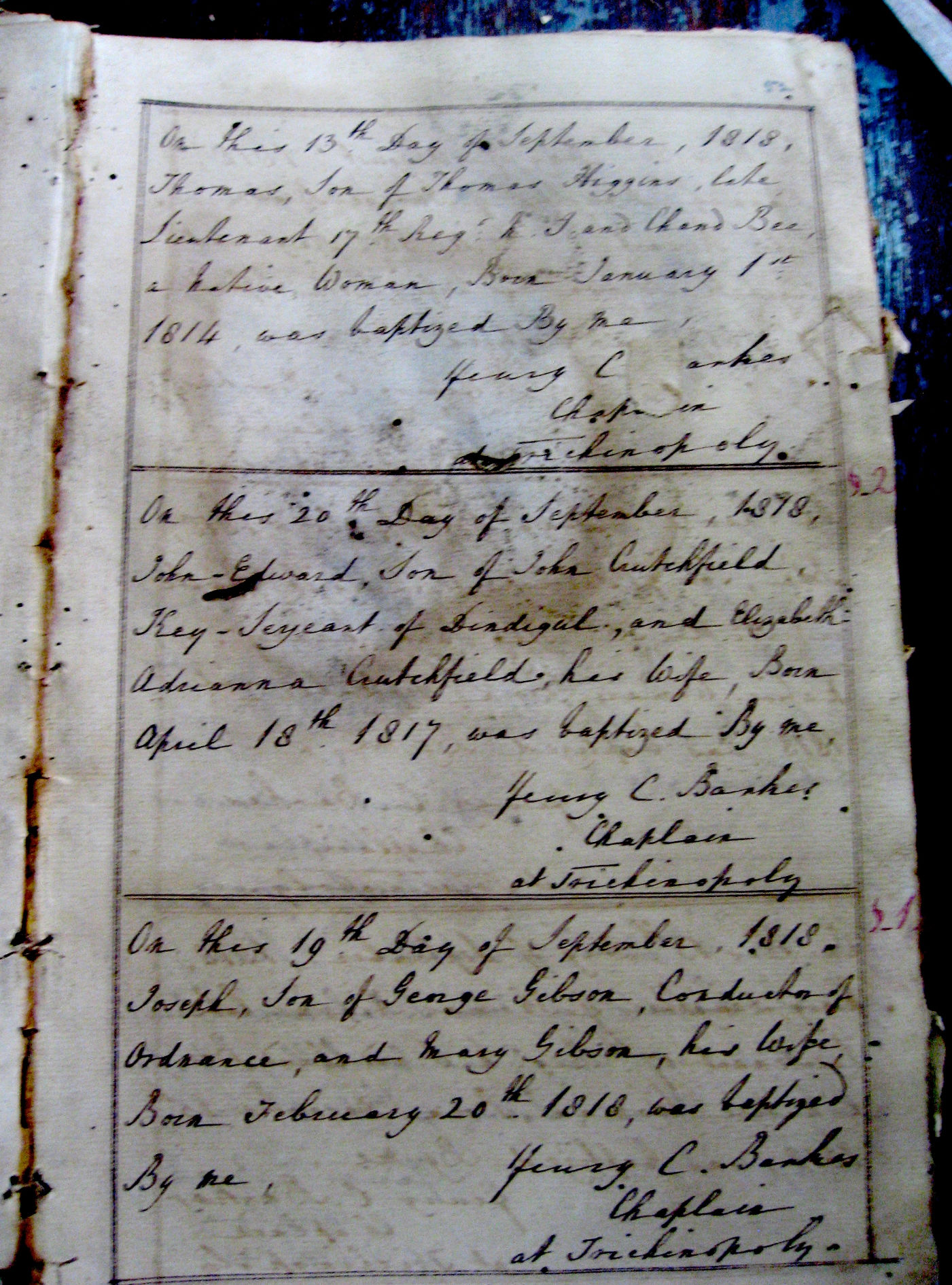 St Johns Church Baptism Register 1810-1827 images - Trichy-St-Johns1818-Baptisms-13.jpg