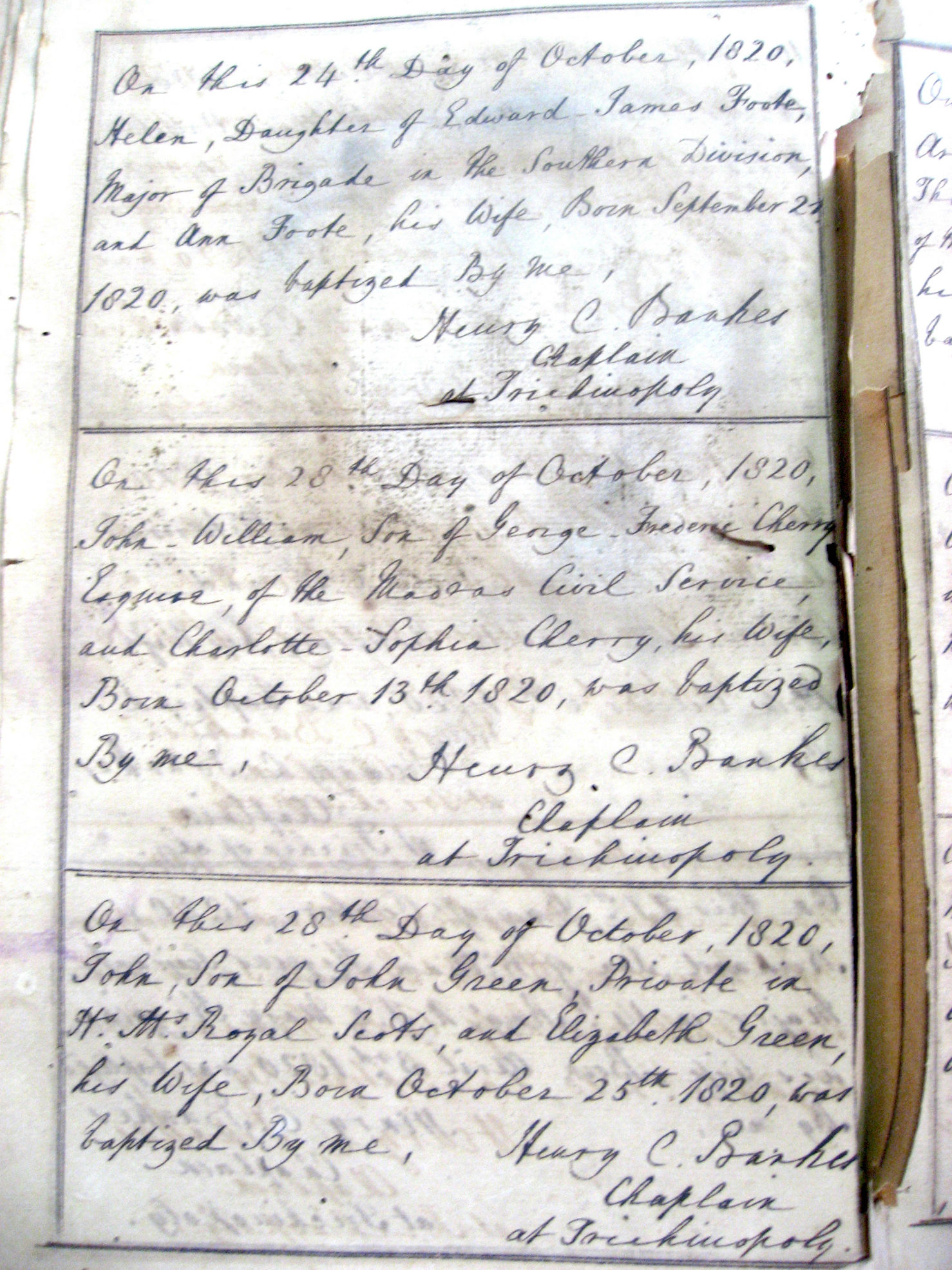 St Johns Church Baptism Register 1810-1827 images - Trichy-St-Johns1820-Baptisms-21.jpg