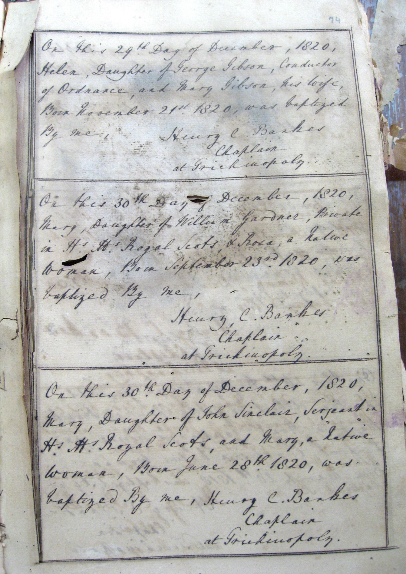 St Johns Church Baptism Register 1810-1827 images - Trichy-St-Johns1820-Baptisms-26.jpg