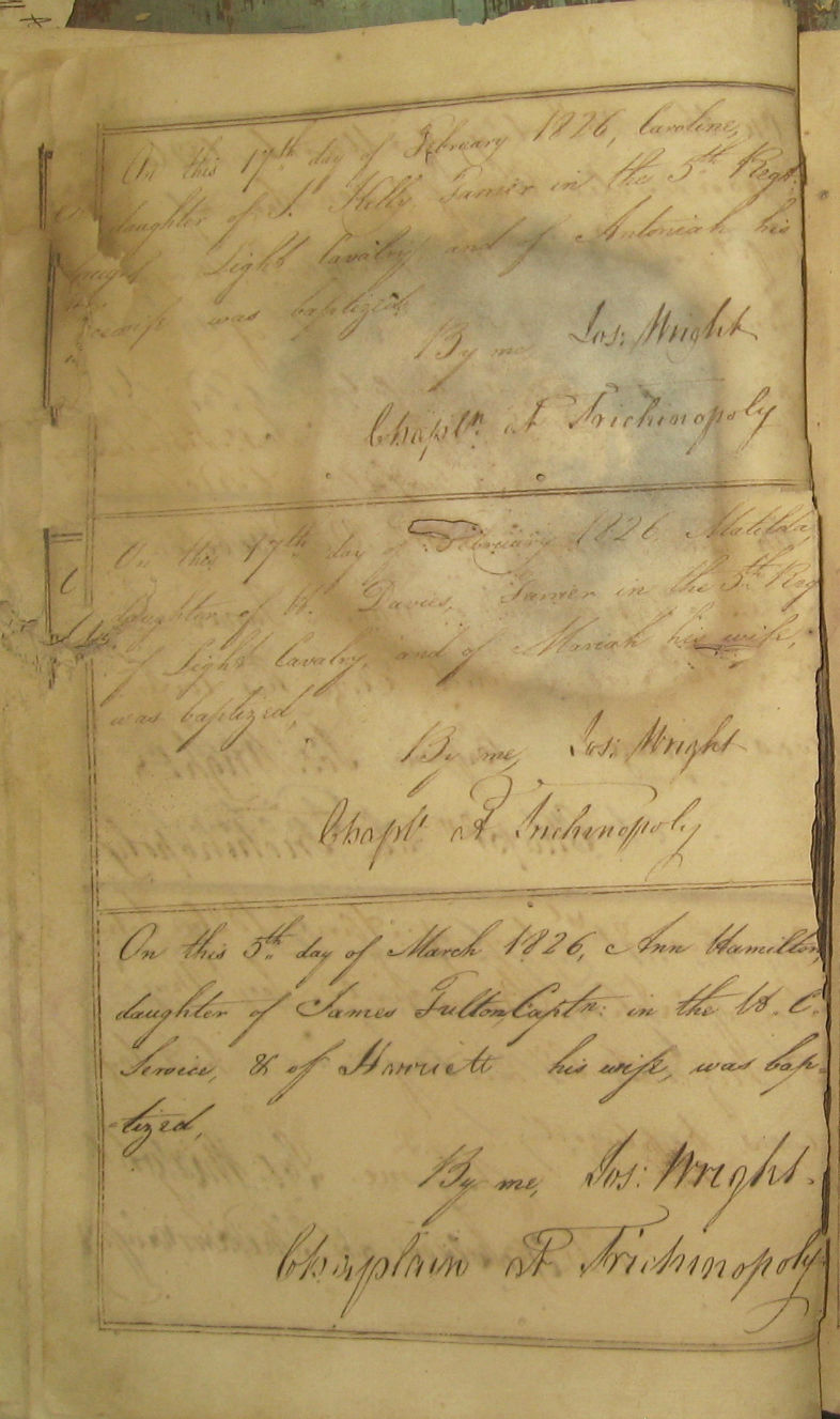 St Johns Church Baptism Register 1810-1827 images - Trichy-St-Johns1826-Baptisms-1.jpg