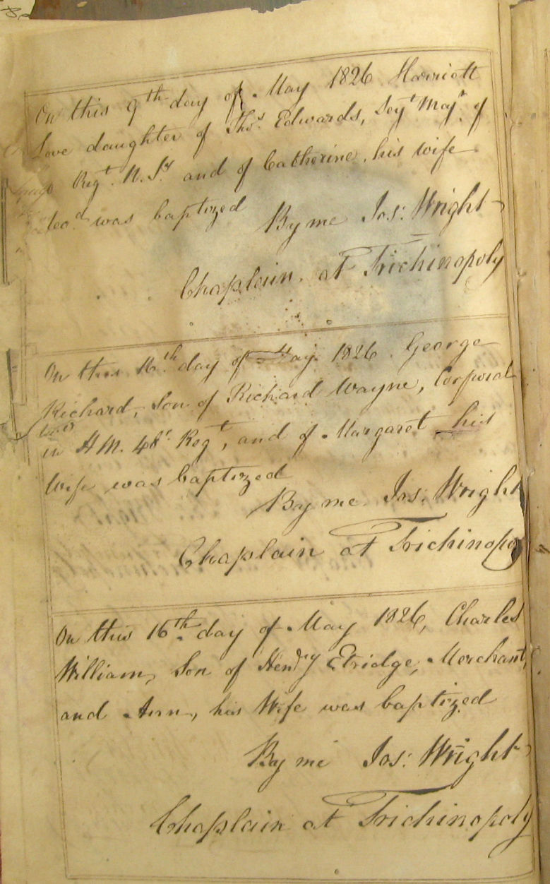 St Johns Church Baptism Register 1810-1827 images - Trichy-St-Johns1826-Baptisms-3.jpg