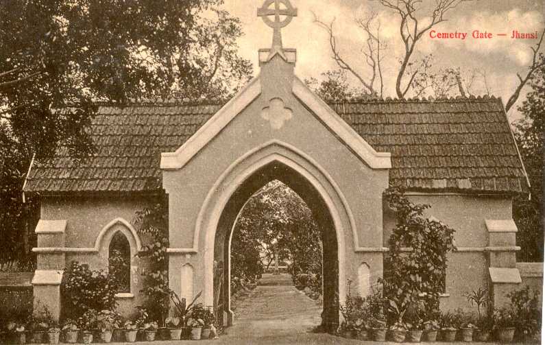 An early 20th century postcard of the 'Cemetery Gate - Jhansi'