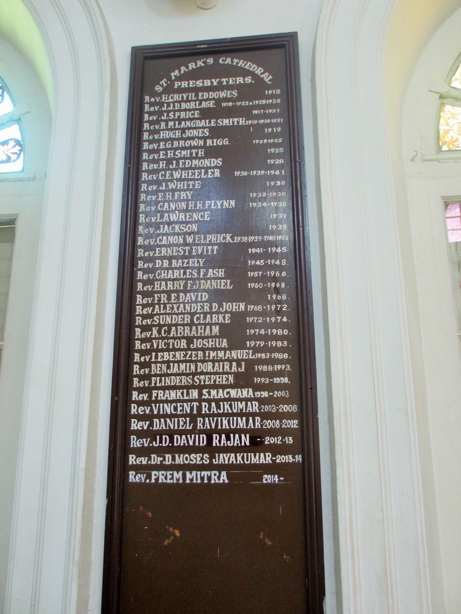 St Marks Cathedral, Bangalore Presbyters plaque 3 of 3