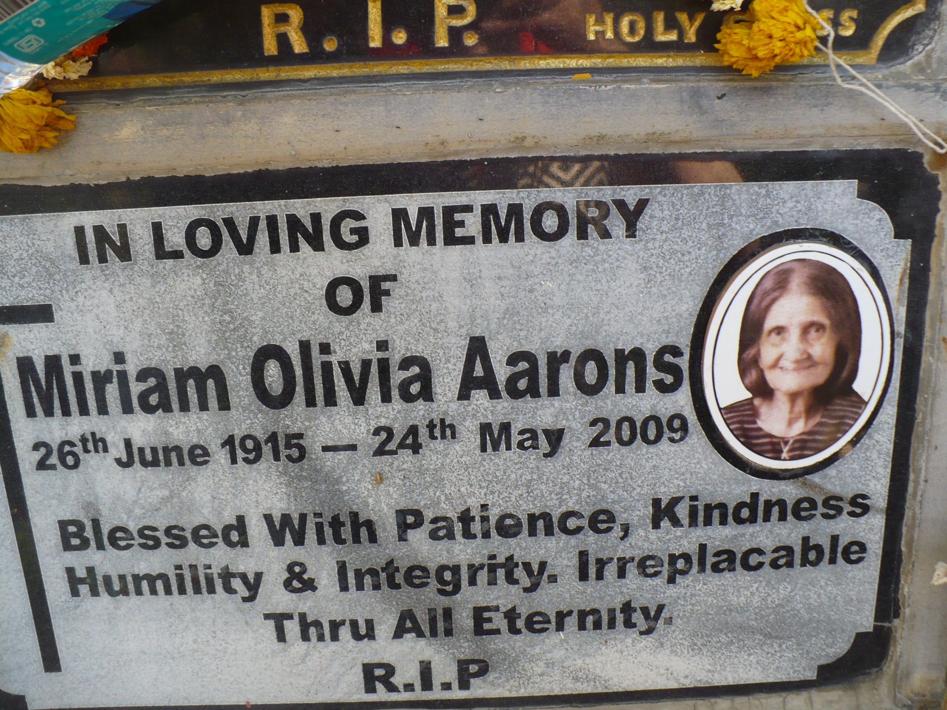 Image title: Aarons, Miriam Olivia grave. St Stephens, Bandra File size: 1,200,177 bytes