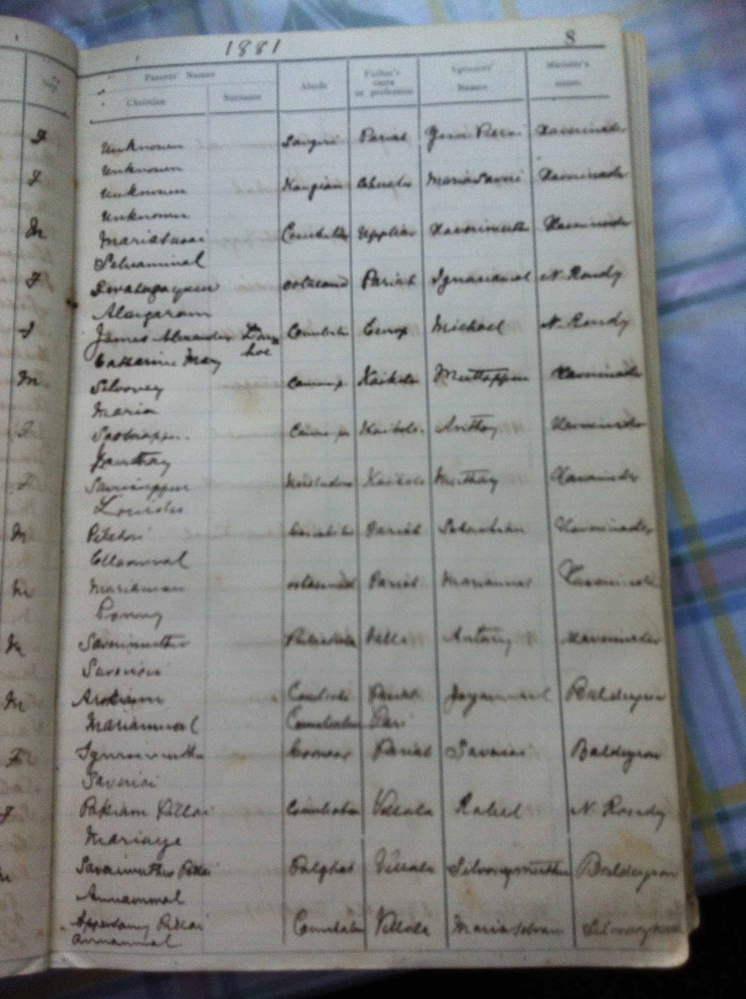 St Michaels Church, Coimbatore - Baptismal Register