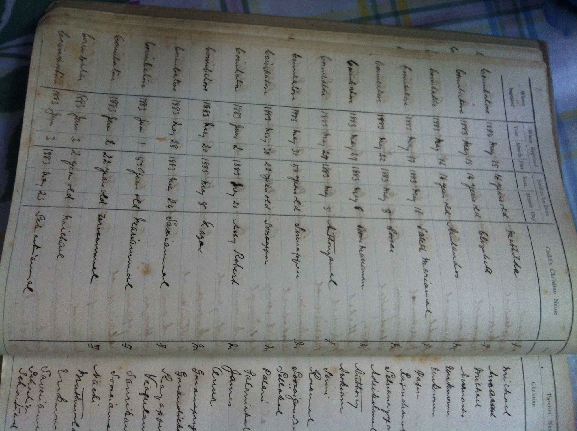 St Michaels Church, Coimbatore - Baptismal Register