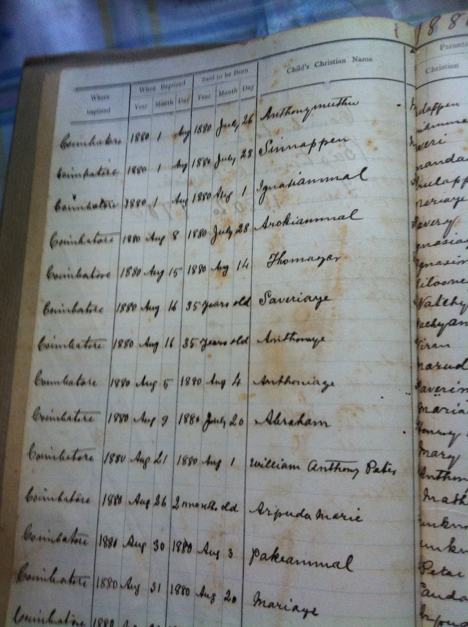 St Michaels Church, Coimbatore - Baptismal Register
