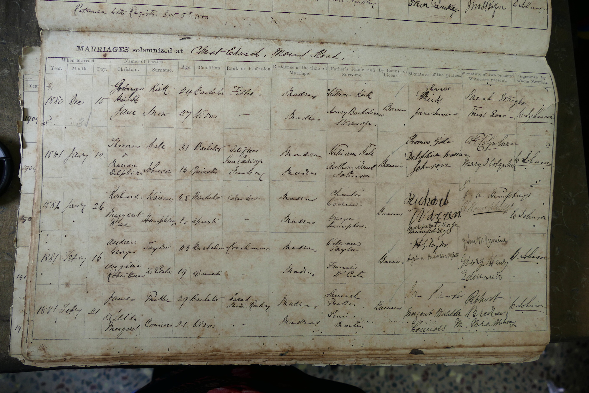 Christ Church, Mount Rd Madras - Marriage Register