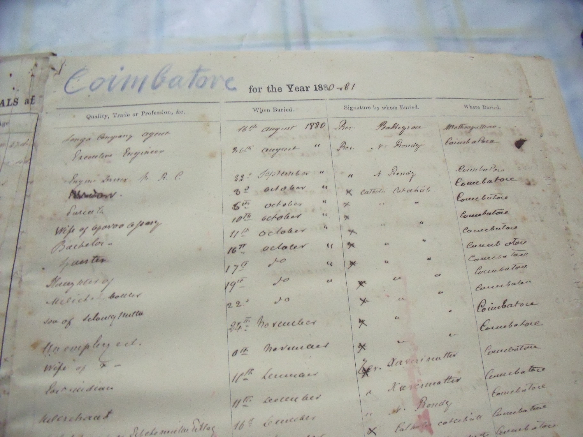 All Souls Church, Coimbatore Madras - Burial Register 1880-1898.