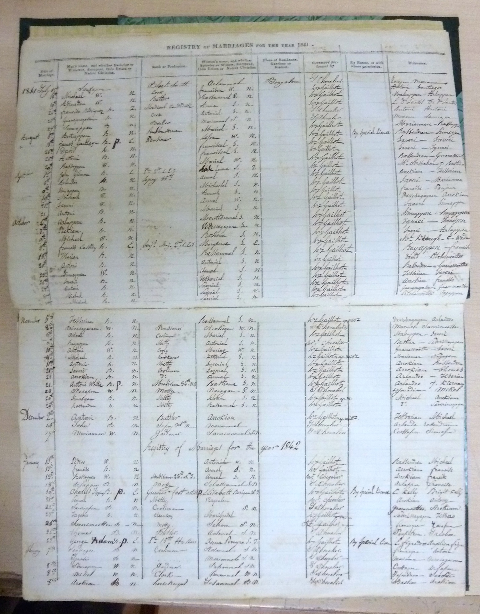 Image title: St Patricks RC Church Bangalore - Marriage Register 1840 to 1880 - P1050192.JPG