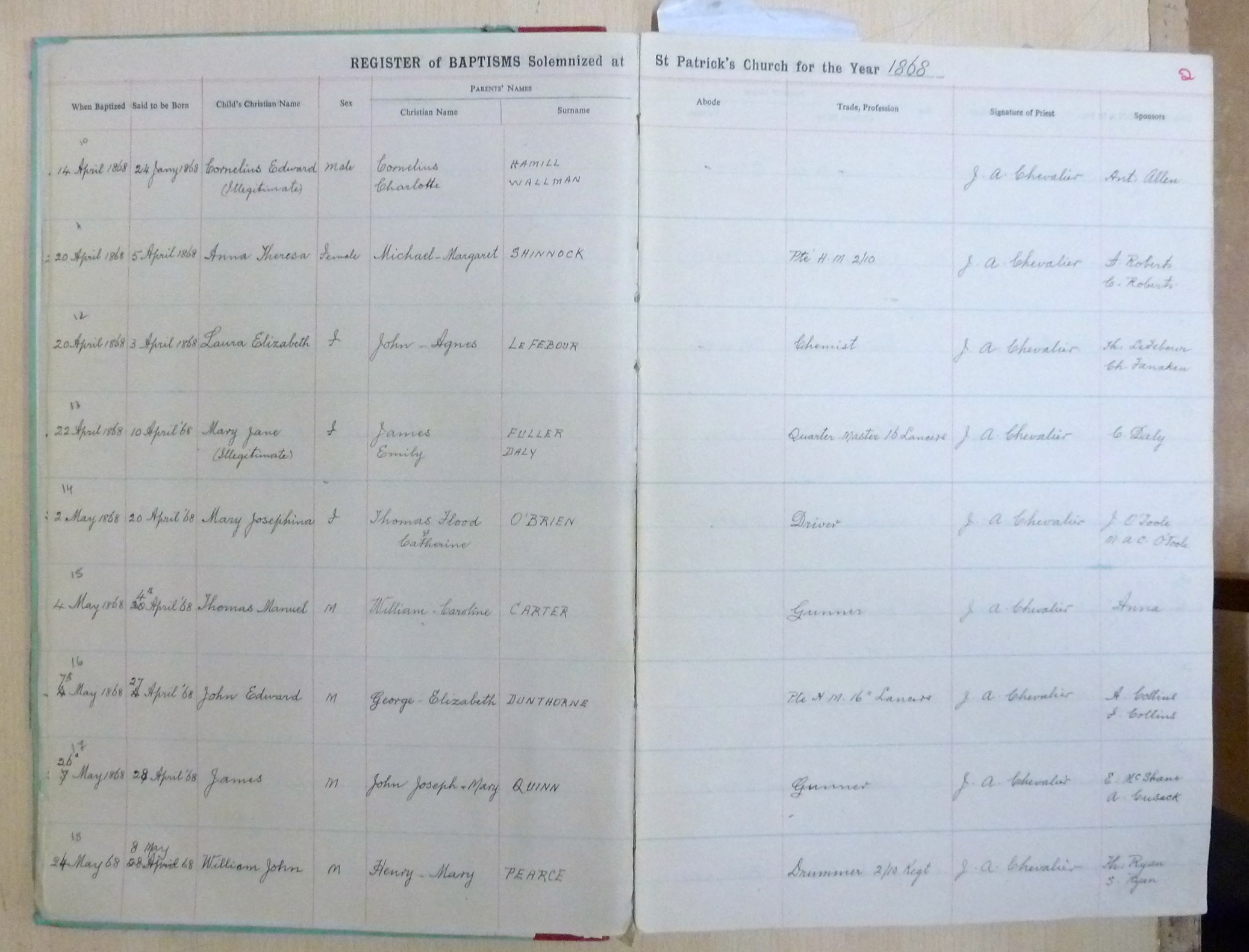 Image title: St Patricks Church, Bangalore Register of Baptisms 1868 to 1898 - page 02 File size: 856,728 bytes