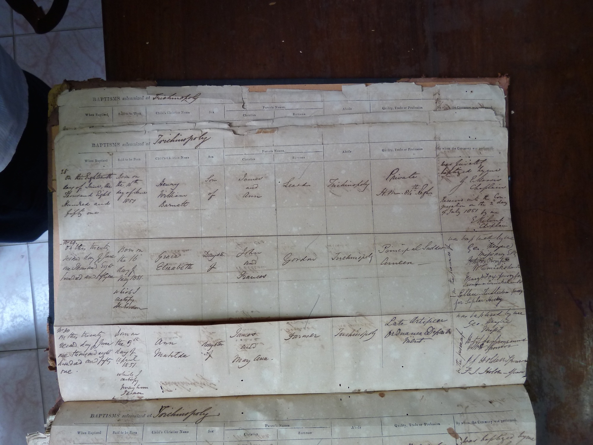 St Johns Church Trichinopoly - Baptismal Registers