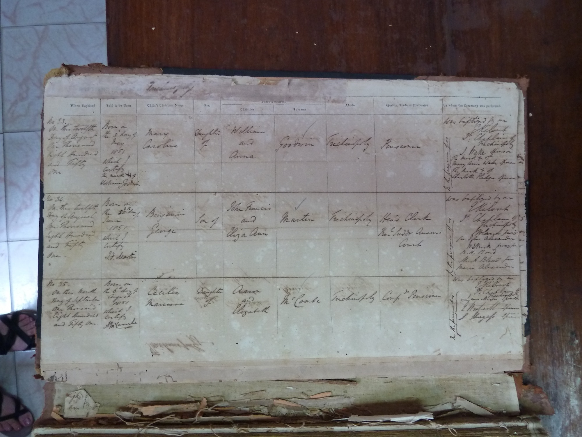 Image title: St Johns Trichinopoly Baptismal Register 1851-1909 - 09