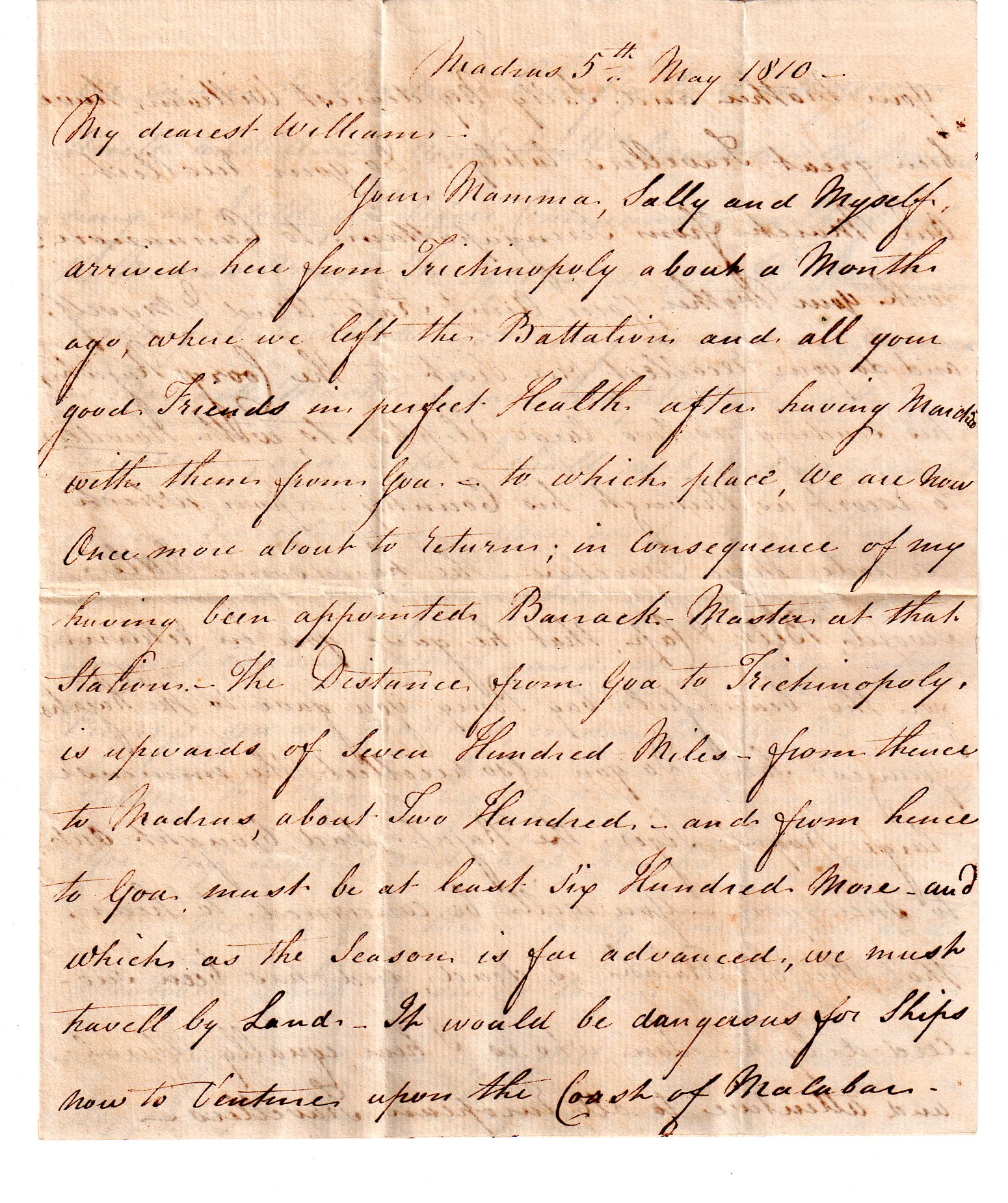 A Letter from Nicholas Matthew Smyth to his son William Robinson Smyth 1810 - 1