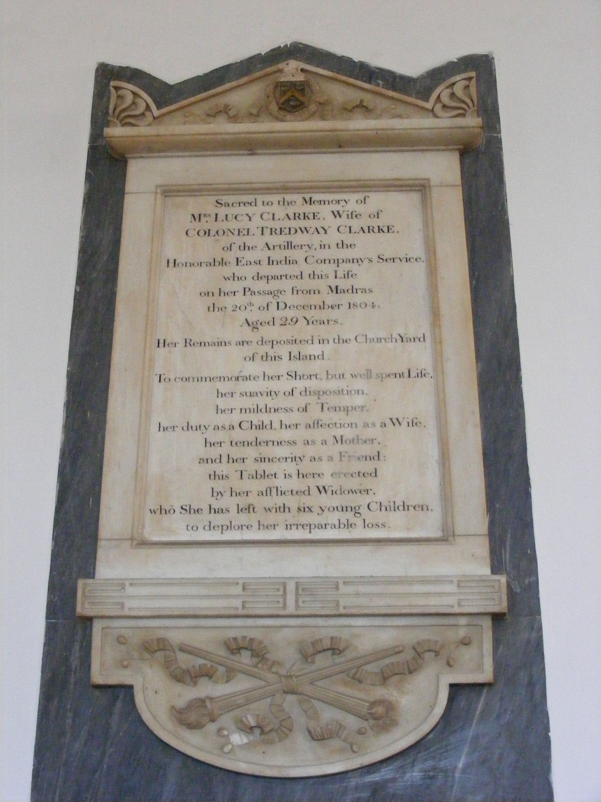 Memorial to Mrs Lucy Clarke, Wife of Colonel Tredway Clarke