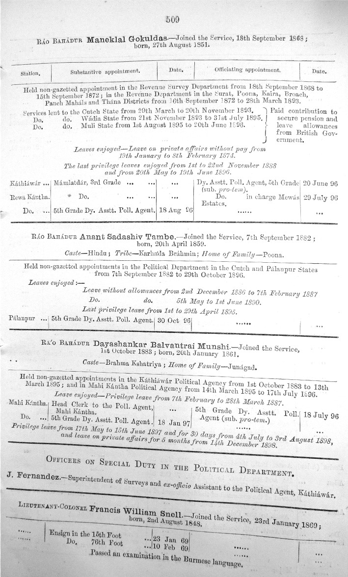 Bombay Gazetted Civil Servants 1899