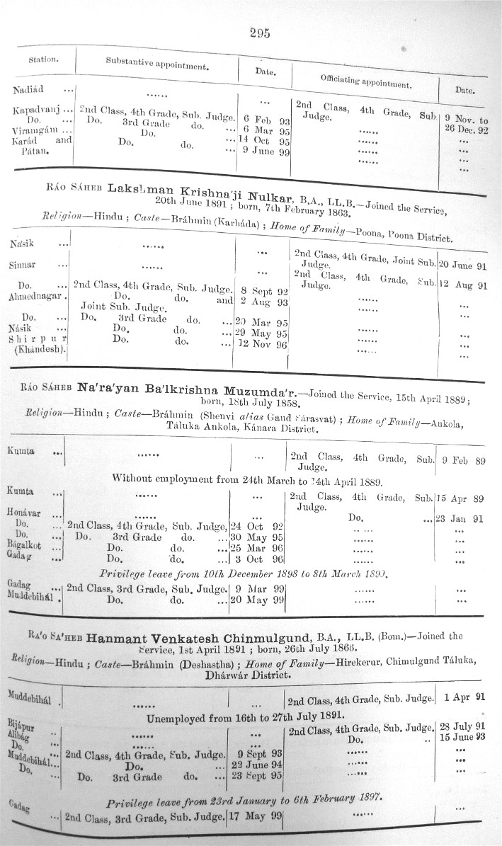 Image title: Bombay Gazetted Civil Servants 1899 Page - 0295.JPG