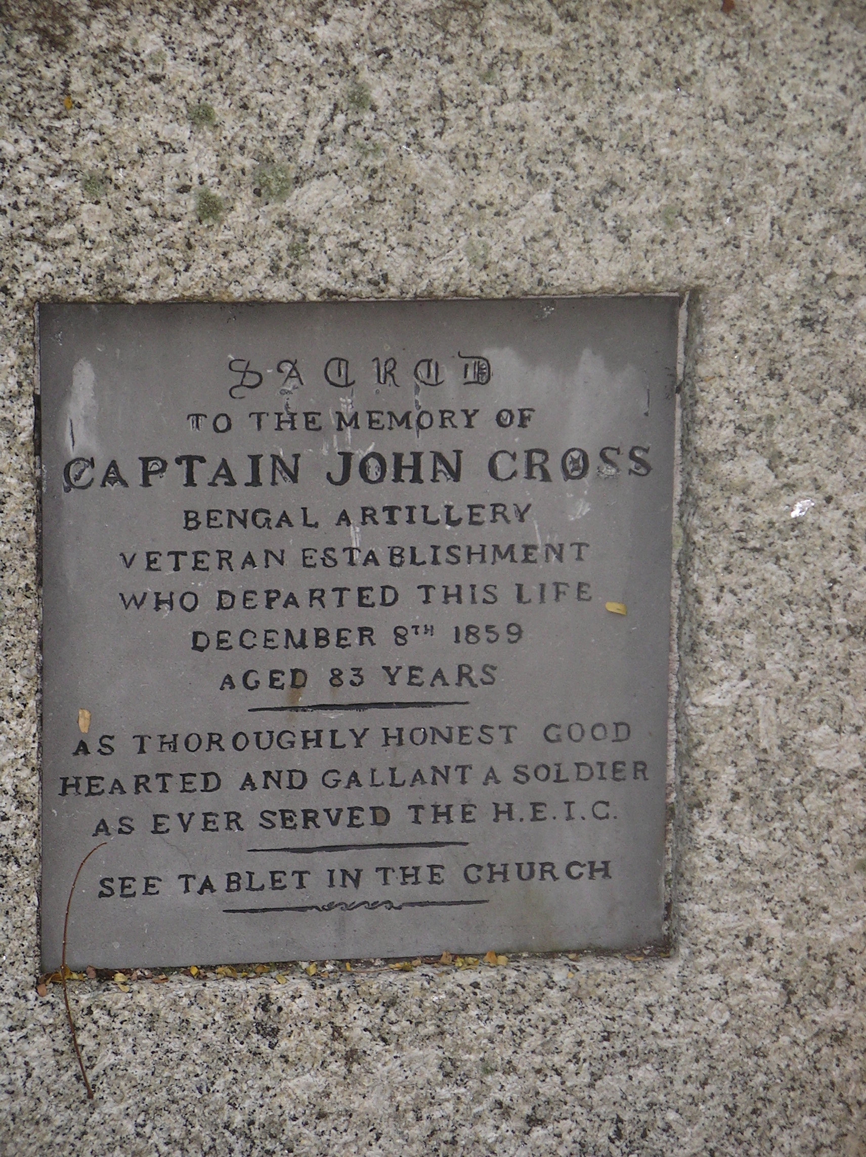 Gravestone of Captain John Cross, Bengal Artillery