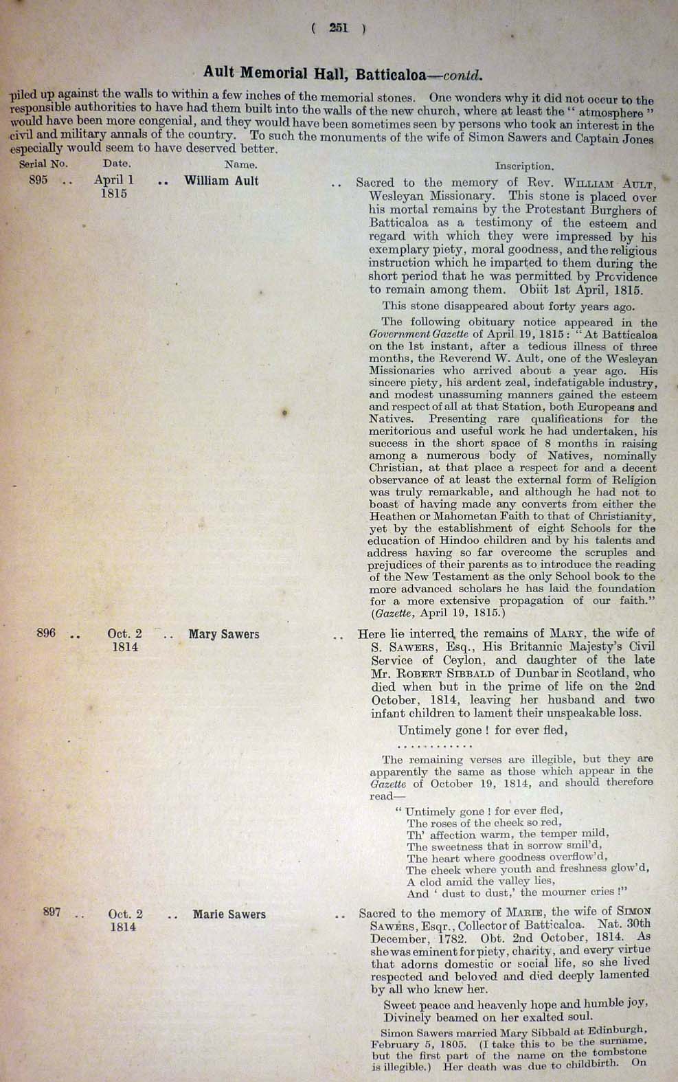Miscellaneous Monument Inscriptions
