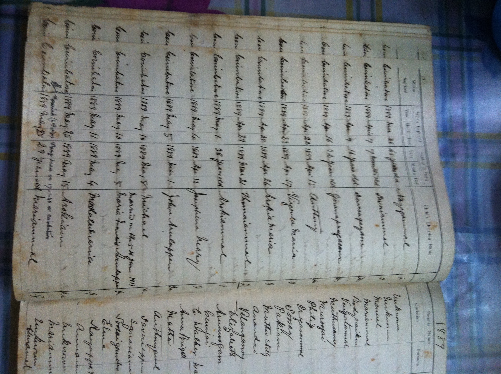 St Michaels Church, Coimbatore Baptismal Register page images.