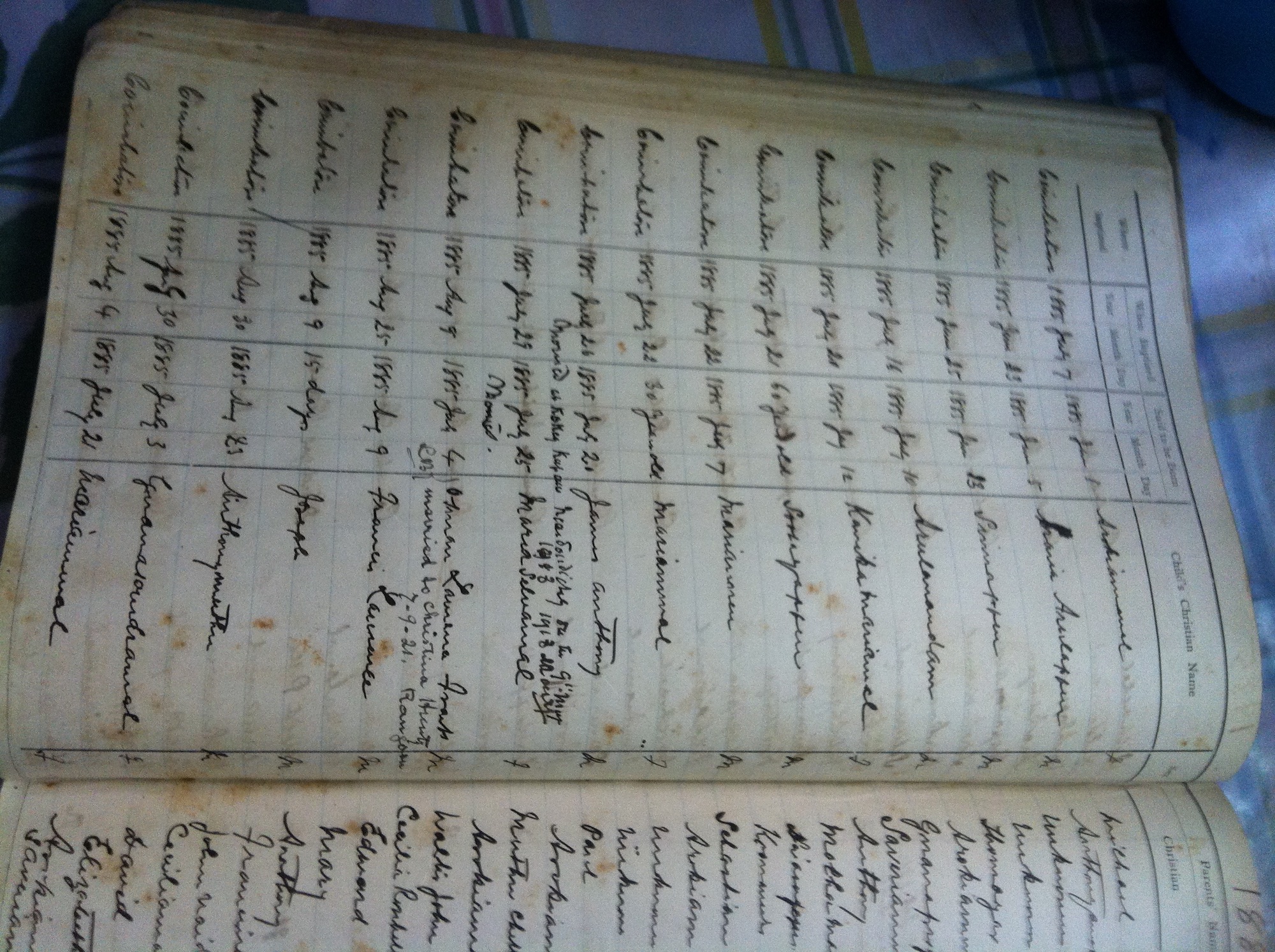 St Michaels Church, Coimbatore - Baptismal Register