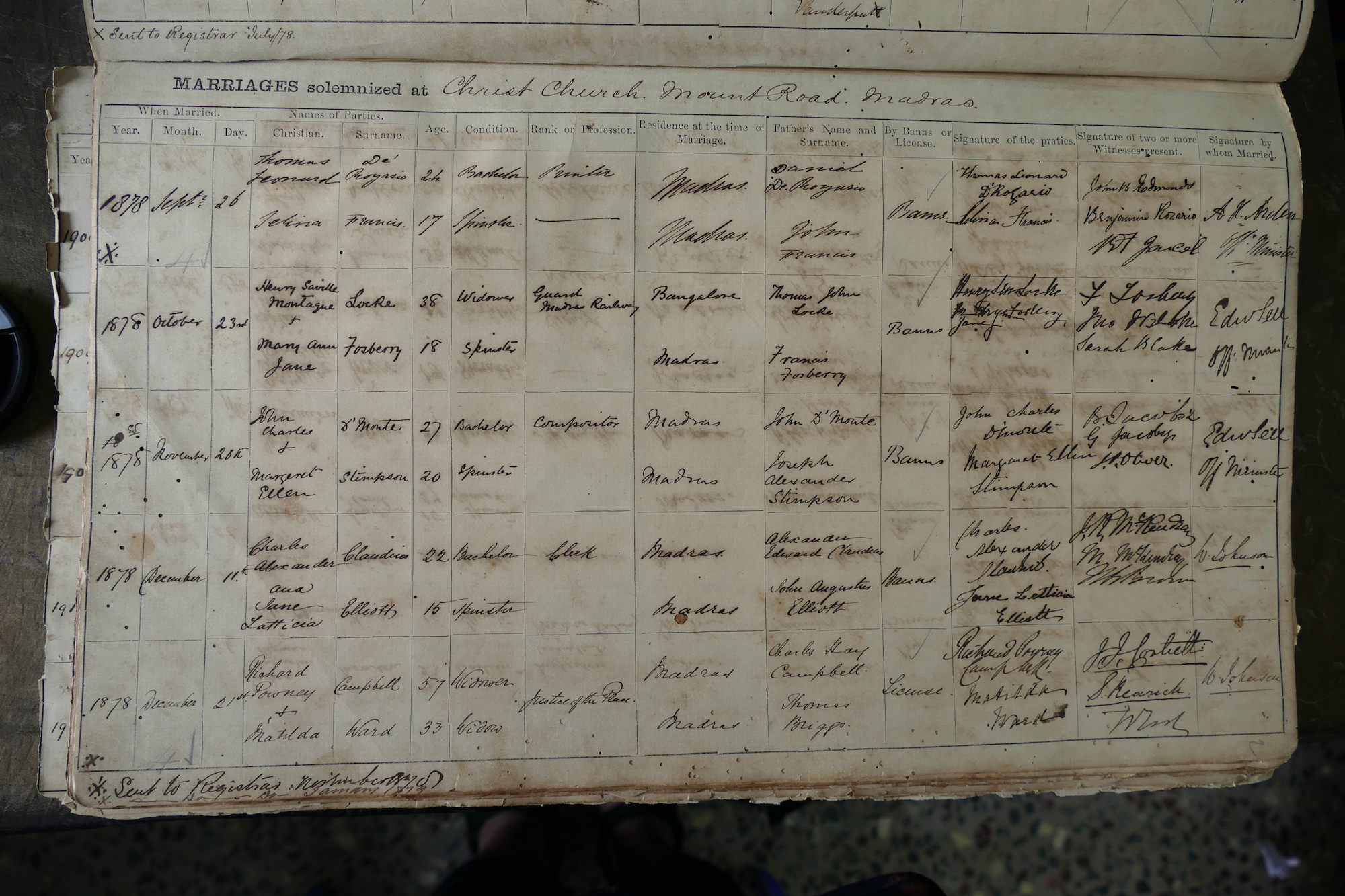 Christ Church, Mount Road Madras, Marriage Register 1874-1898 - 09