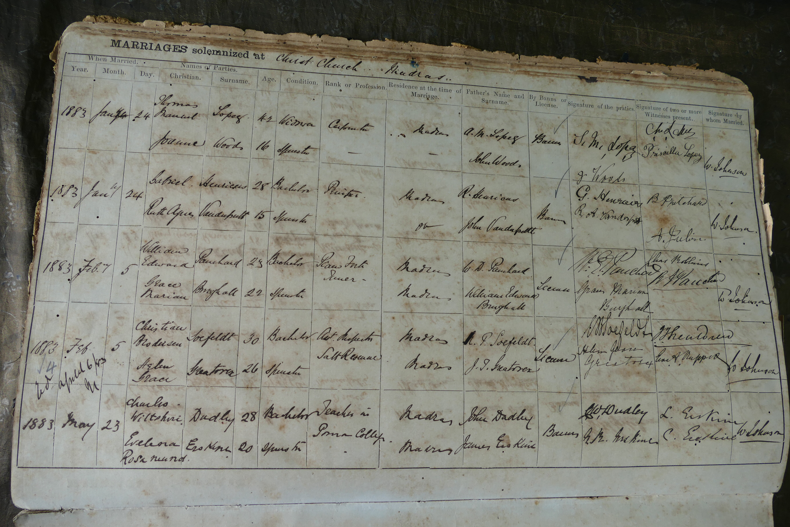 Image title: Christ Church, Mount Road Madras, Marriage Register 1874-1898 - 24 File size: 2,219,099 bytes