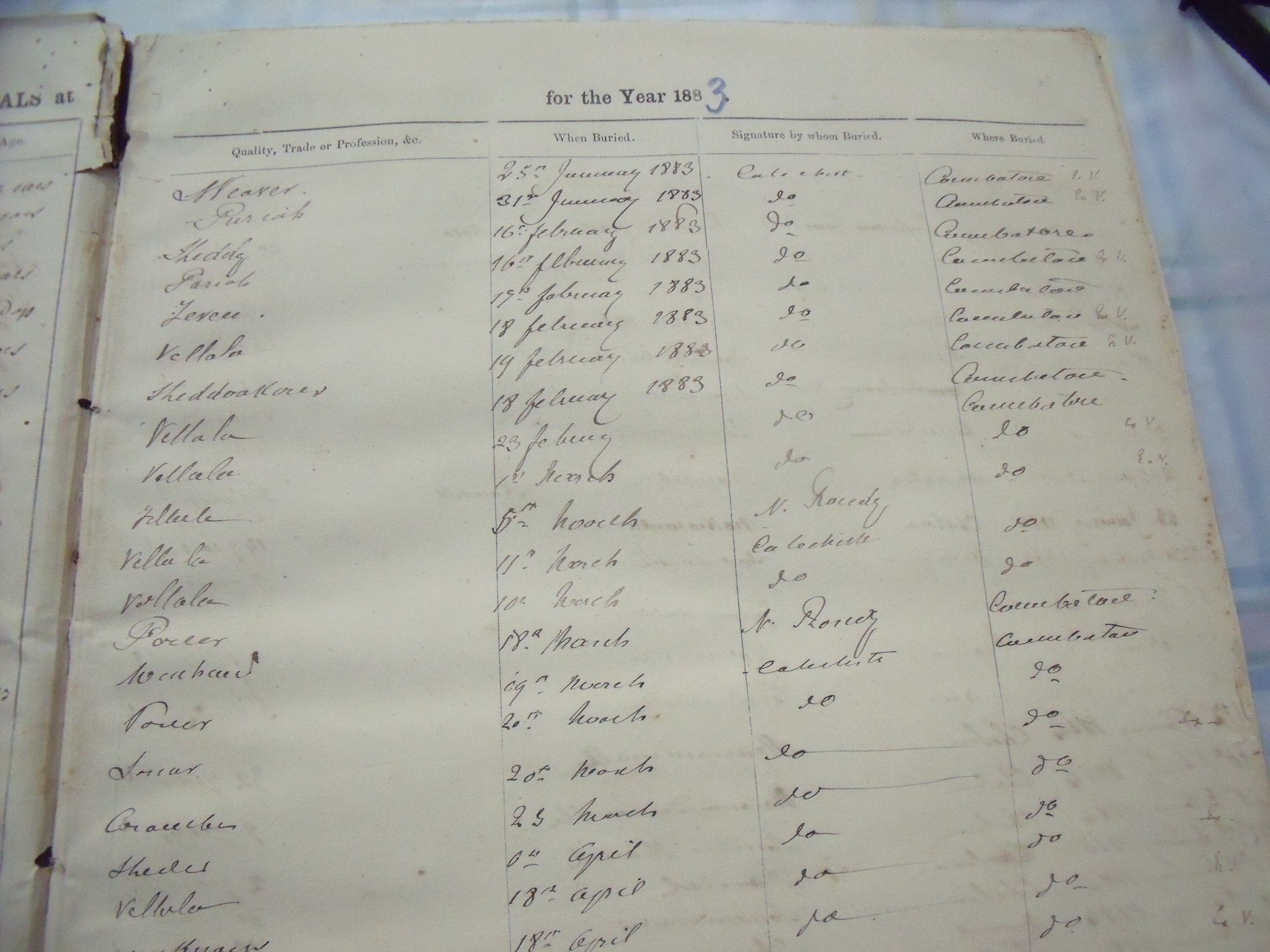 All Souls Church, Coimbatore - Burial Records