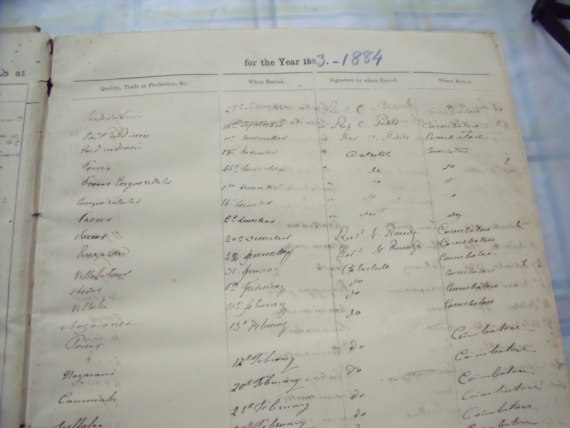 All Souls Church, Coimbatore - Burial Records