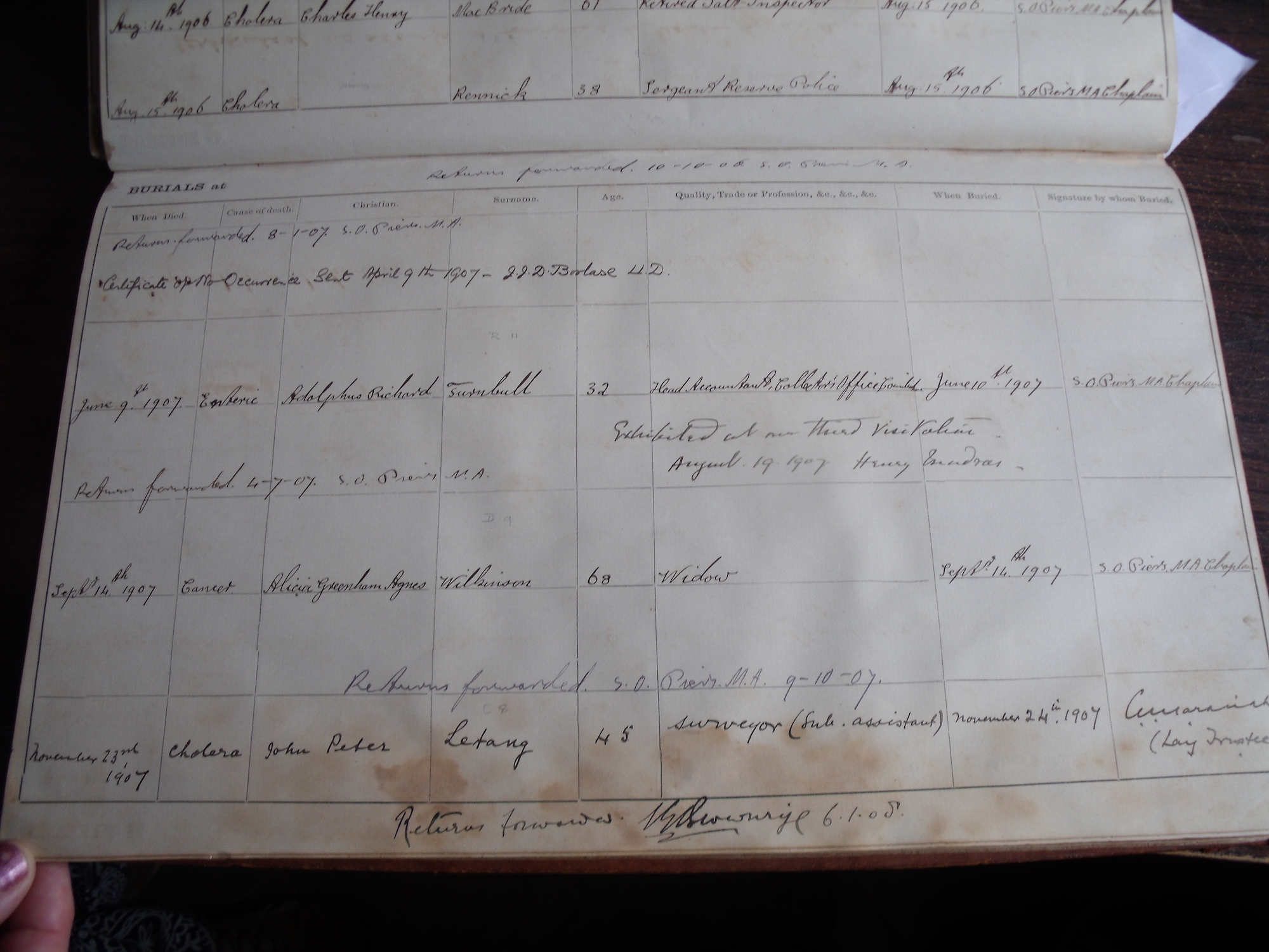 All Souls Church, Coimbatore - Burial Records