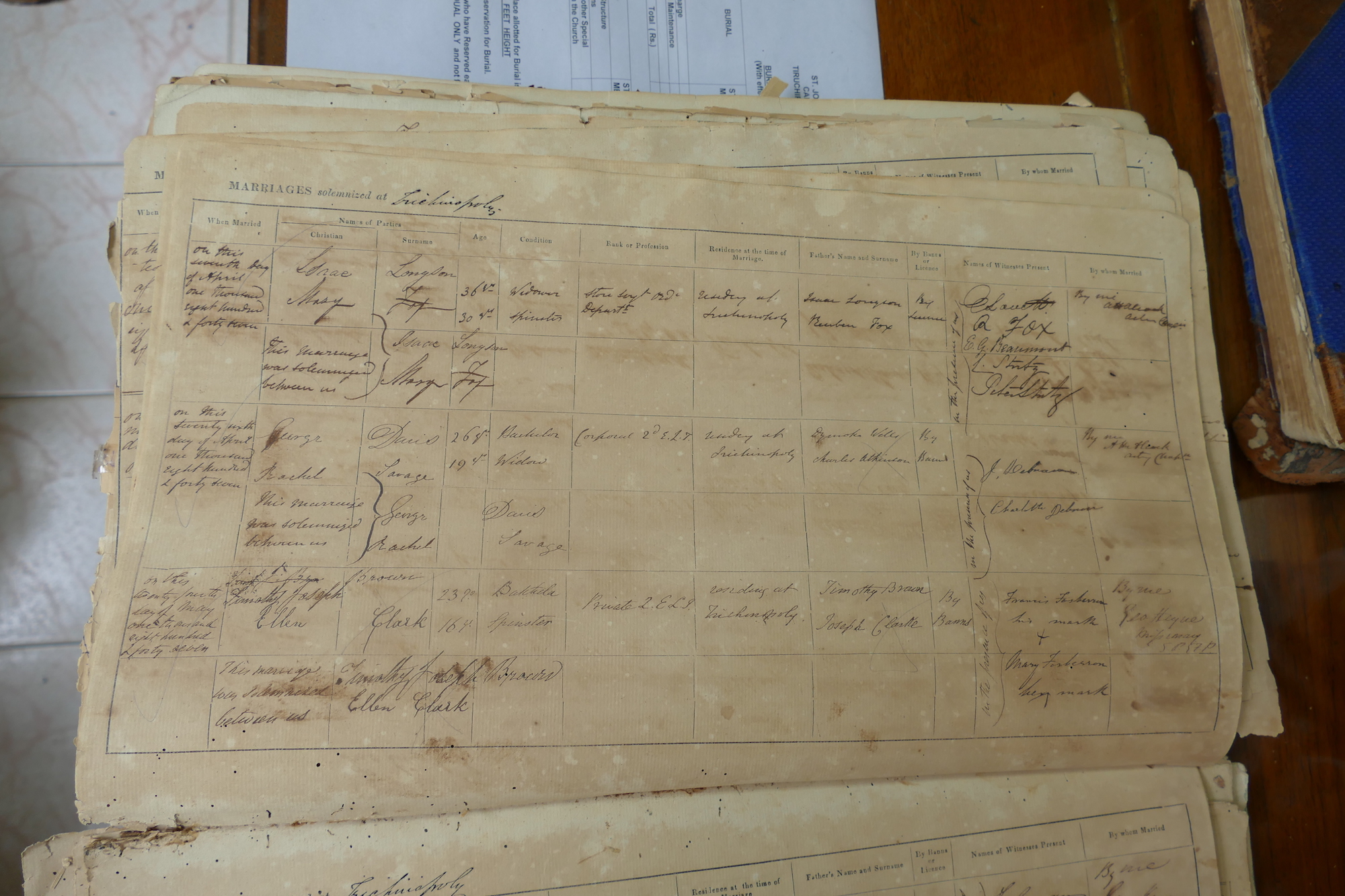 St Johns Church Trichinopoly Madras - Marriage Registers