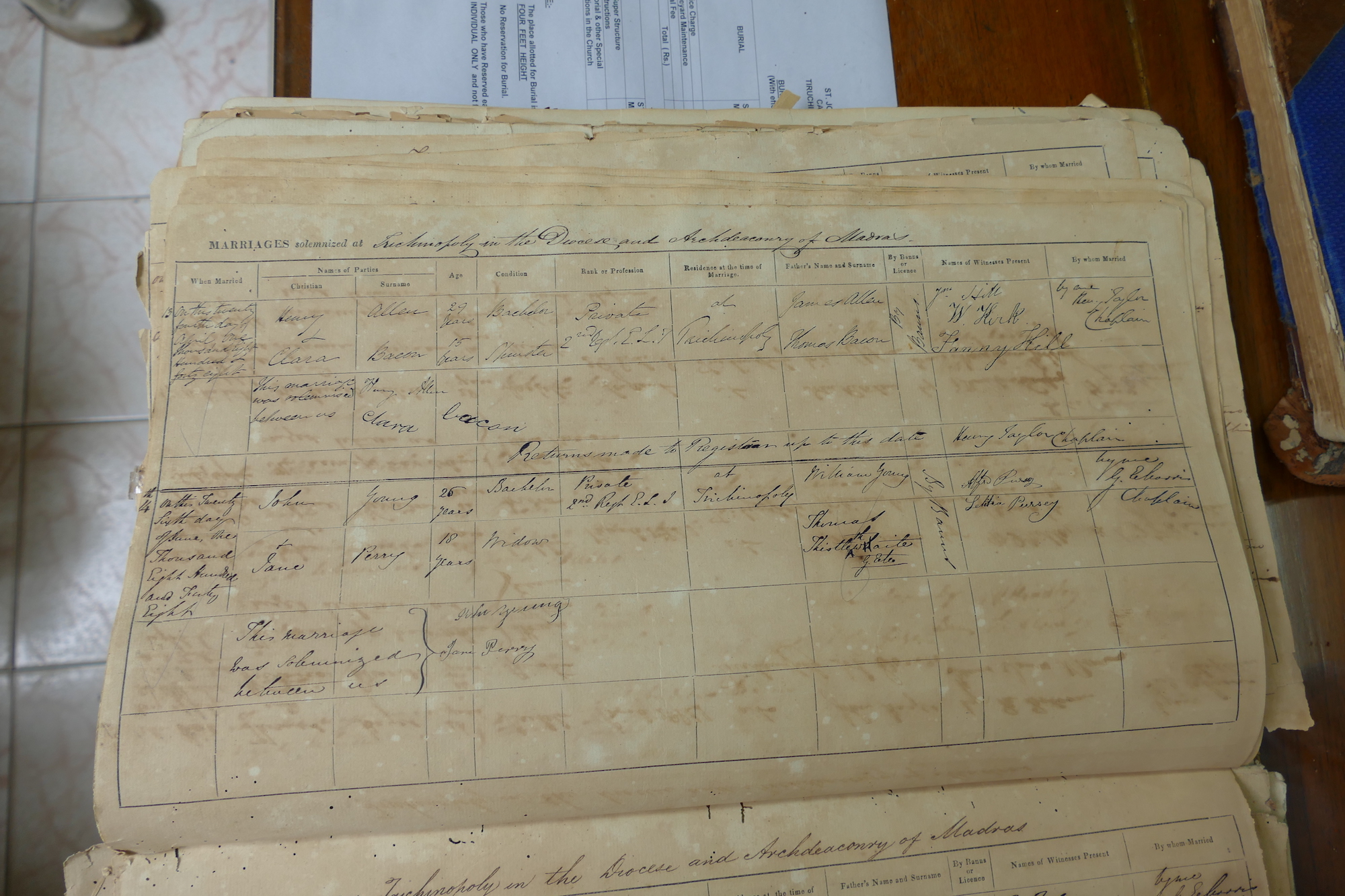 St Johns Church Trichinopoly Madras - Marriage Registers