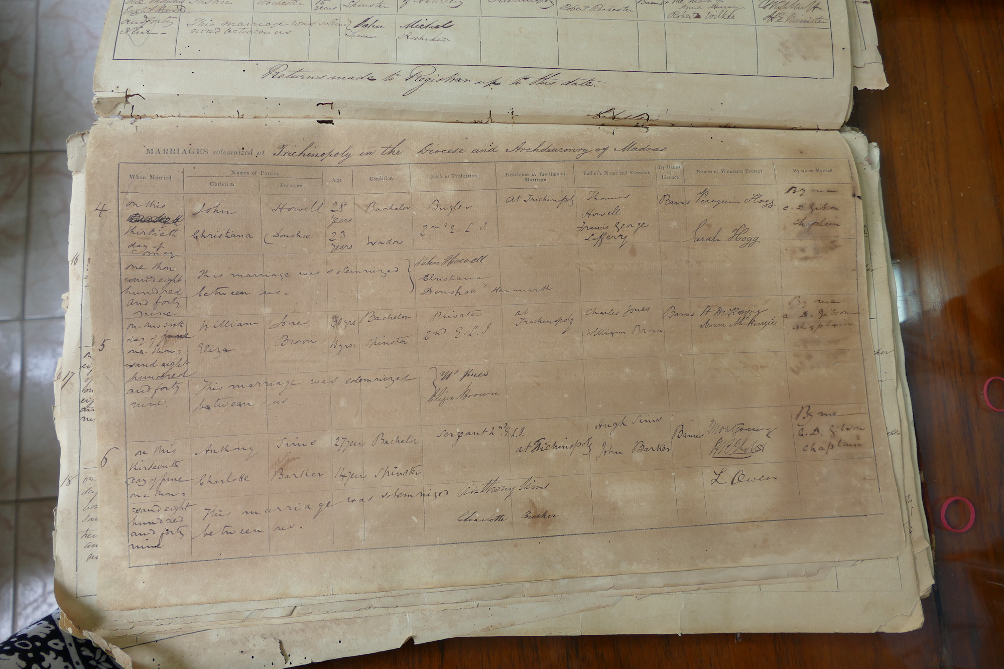 St Johns Church Trichinopoly Madras - Marriage Registers