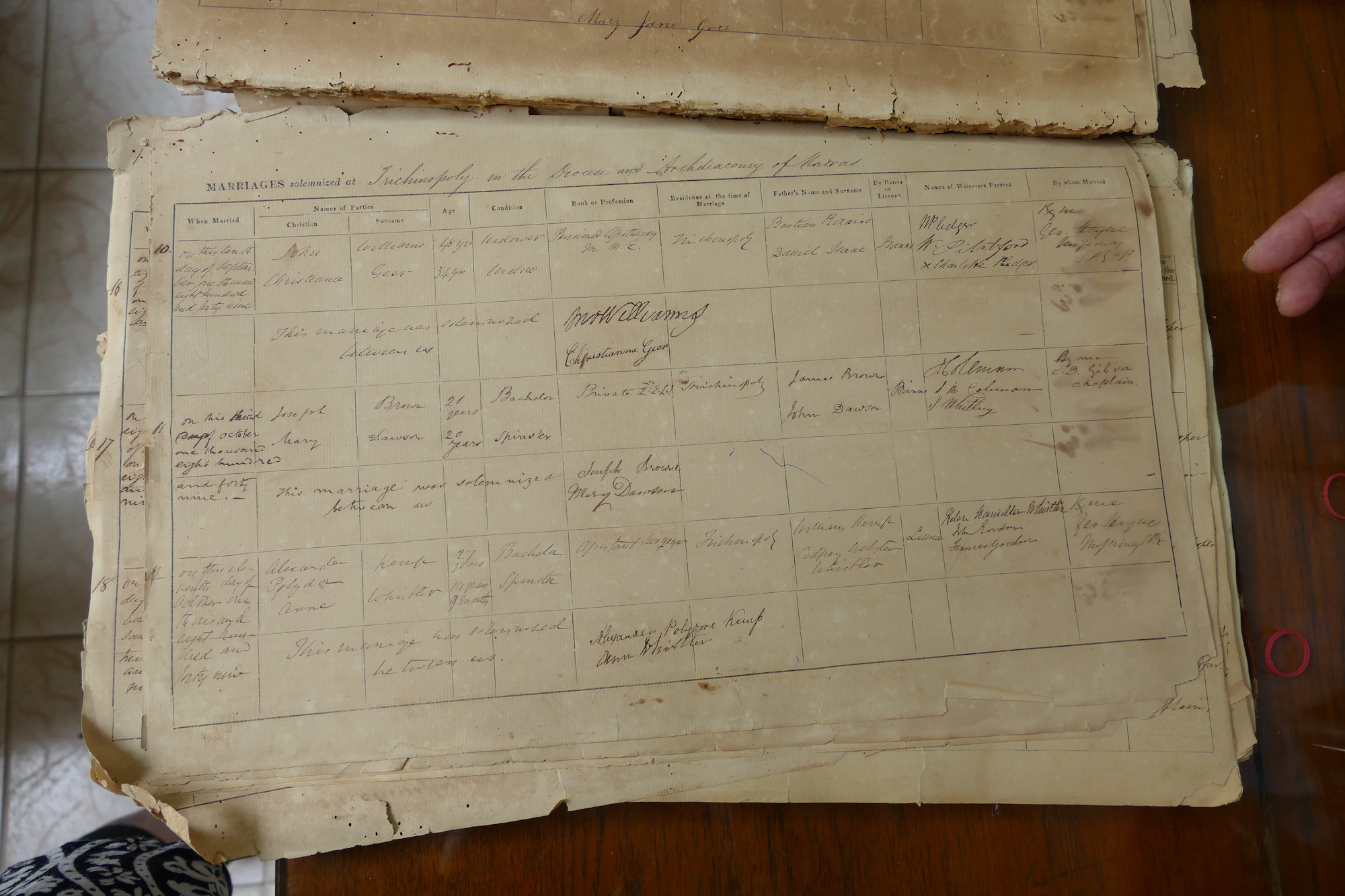 St Johns Church Trichinopoly Madras - Marriage Registers