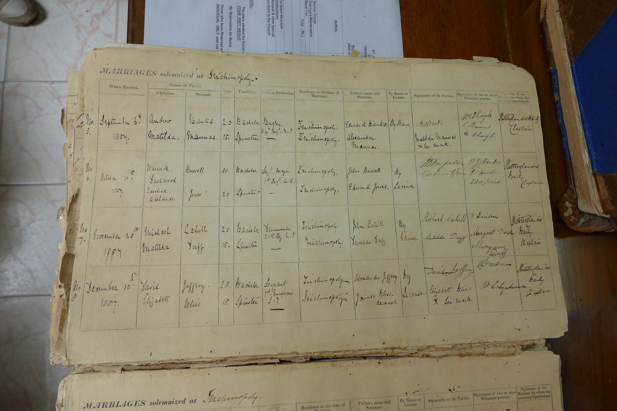 St Johns Church Trichinopoly Madras - Marriage Registers