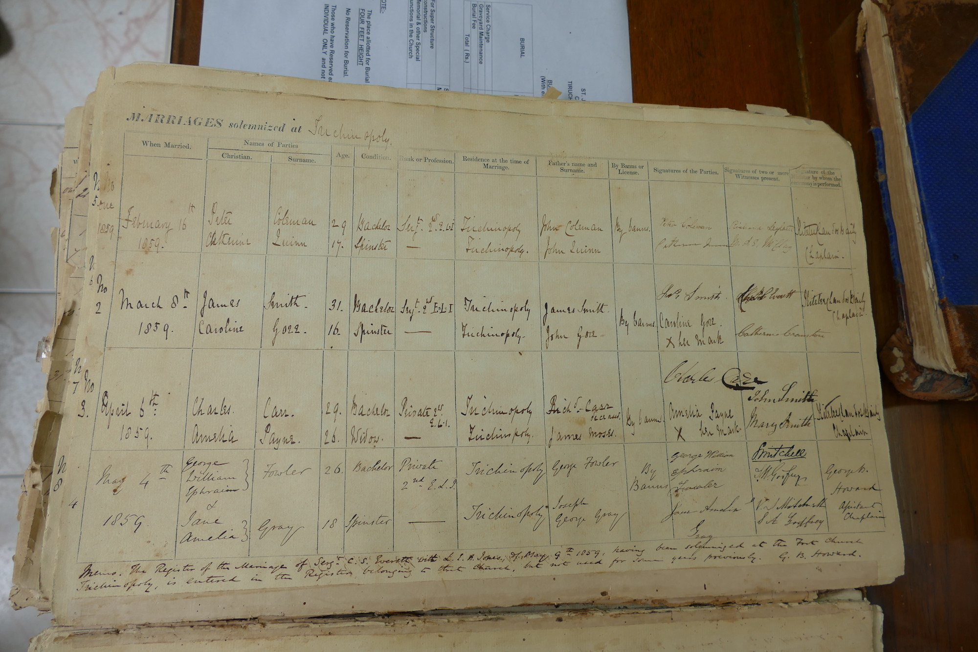 St Johns Church Trichinopoly Madras - Marriage Registers