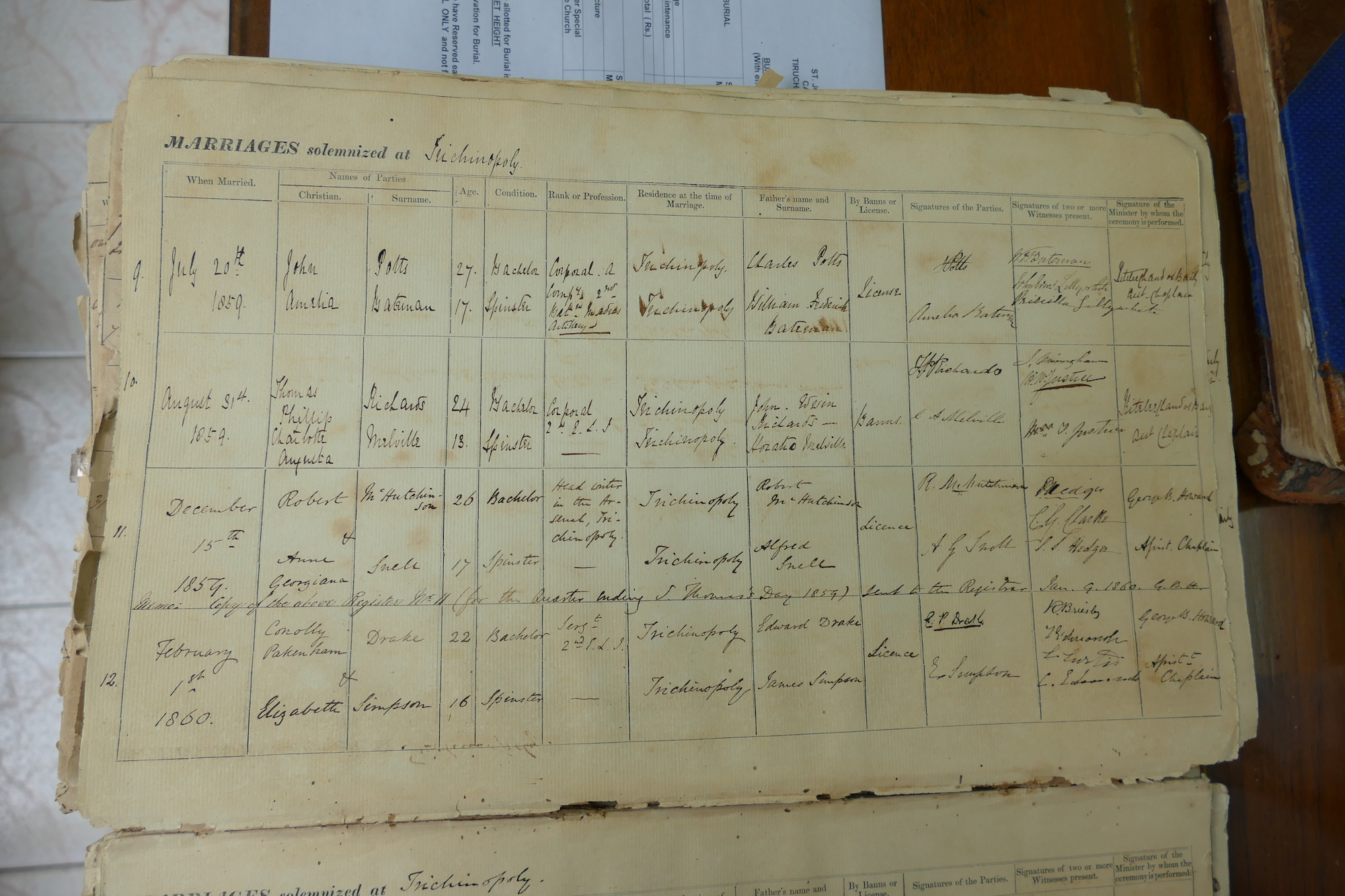 St Johns Church Trichinopoly Madras - Marriage Registers