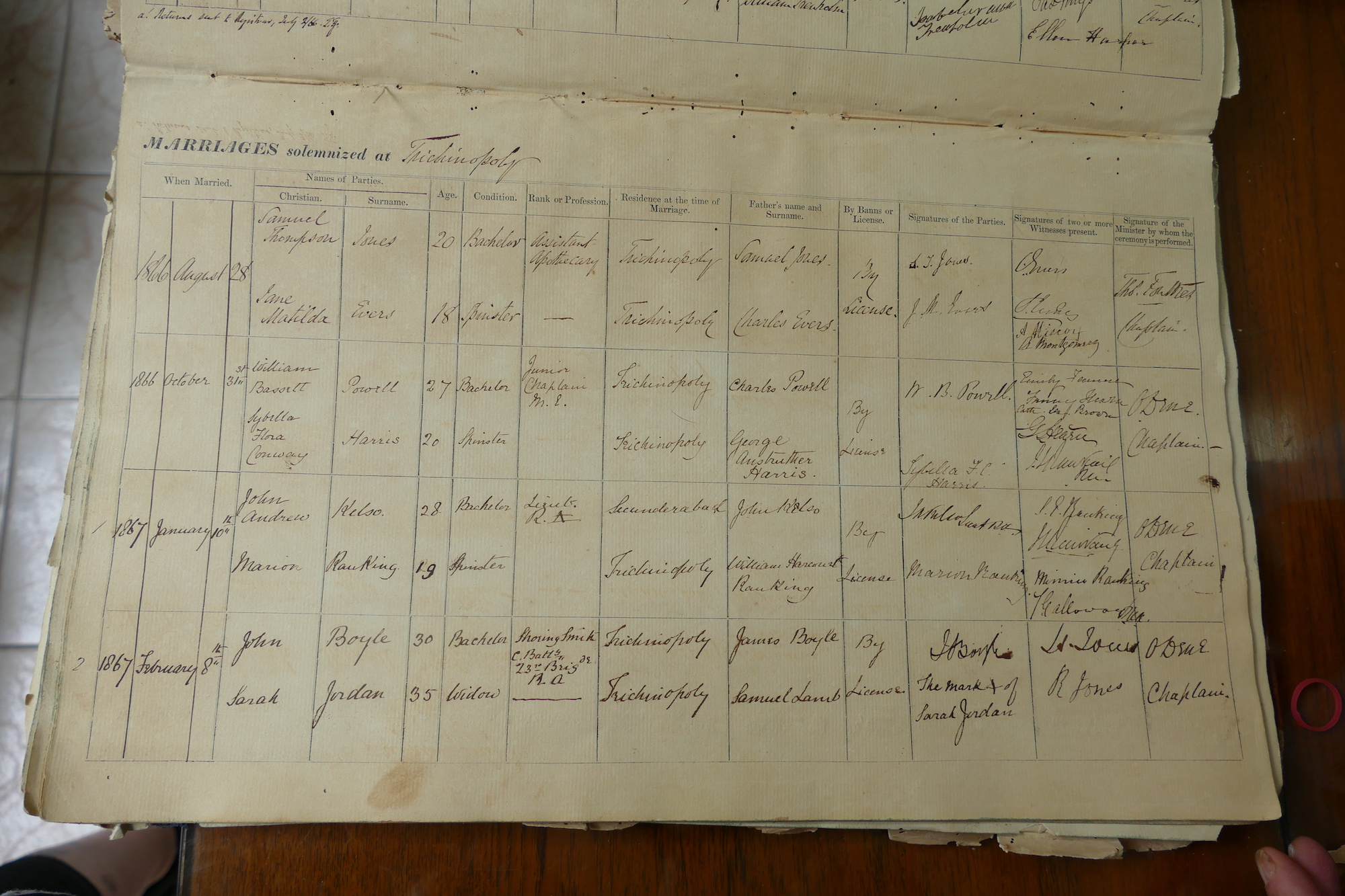 St Johns Church Trichinopoly Madras - Marriage Registers