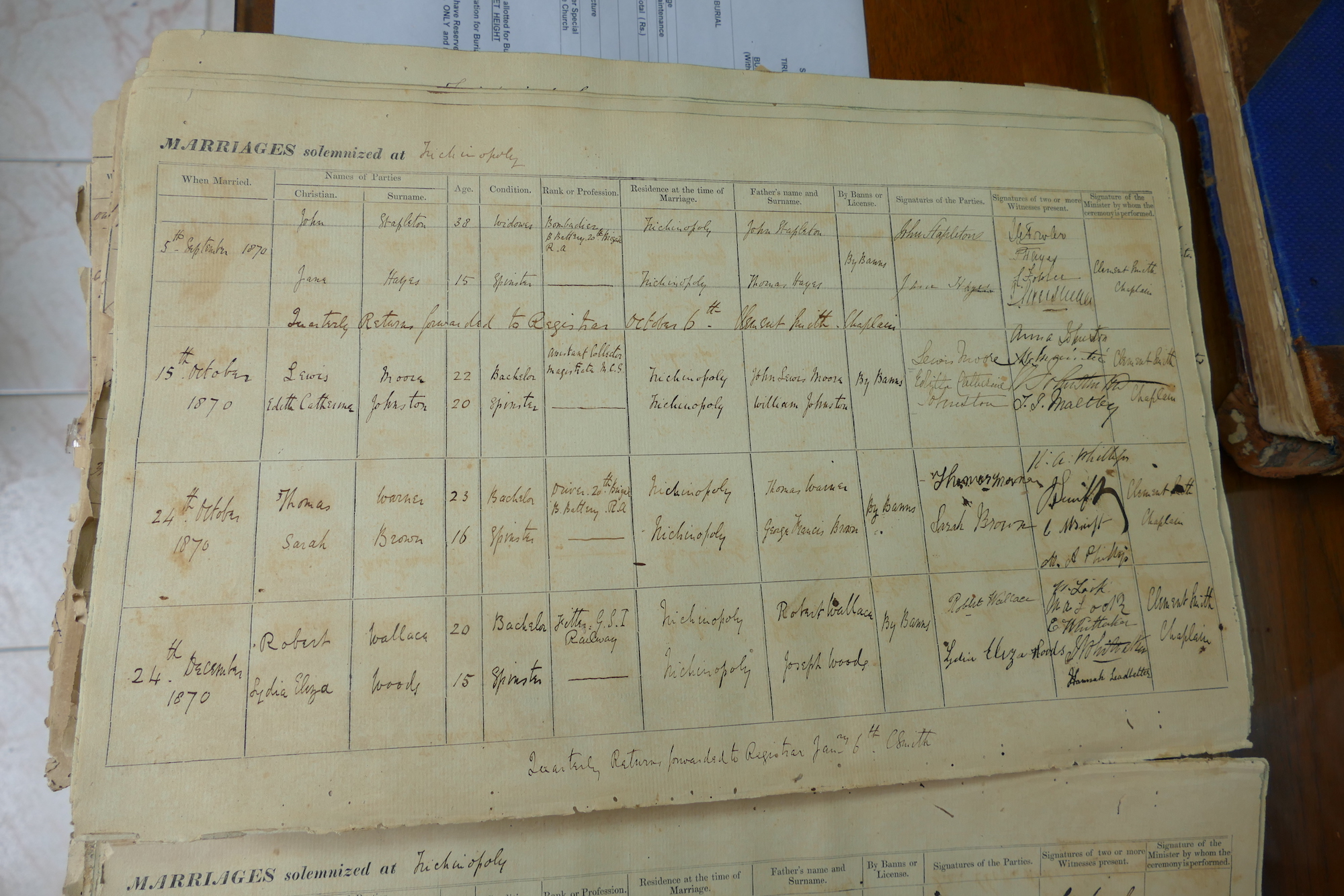 St Johns Church Trichinopoly Madras - Marriage Registers