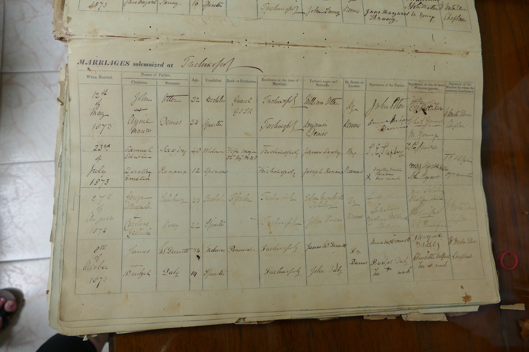 St Johns Church Trichinopoly Madras - Marriage Registers