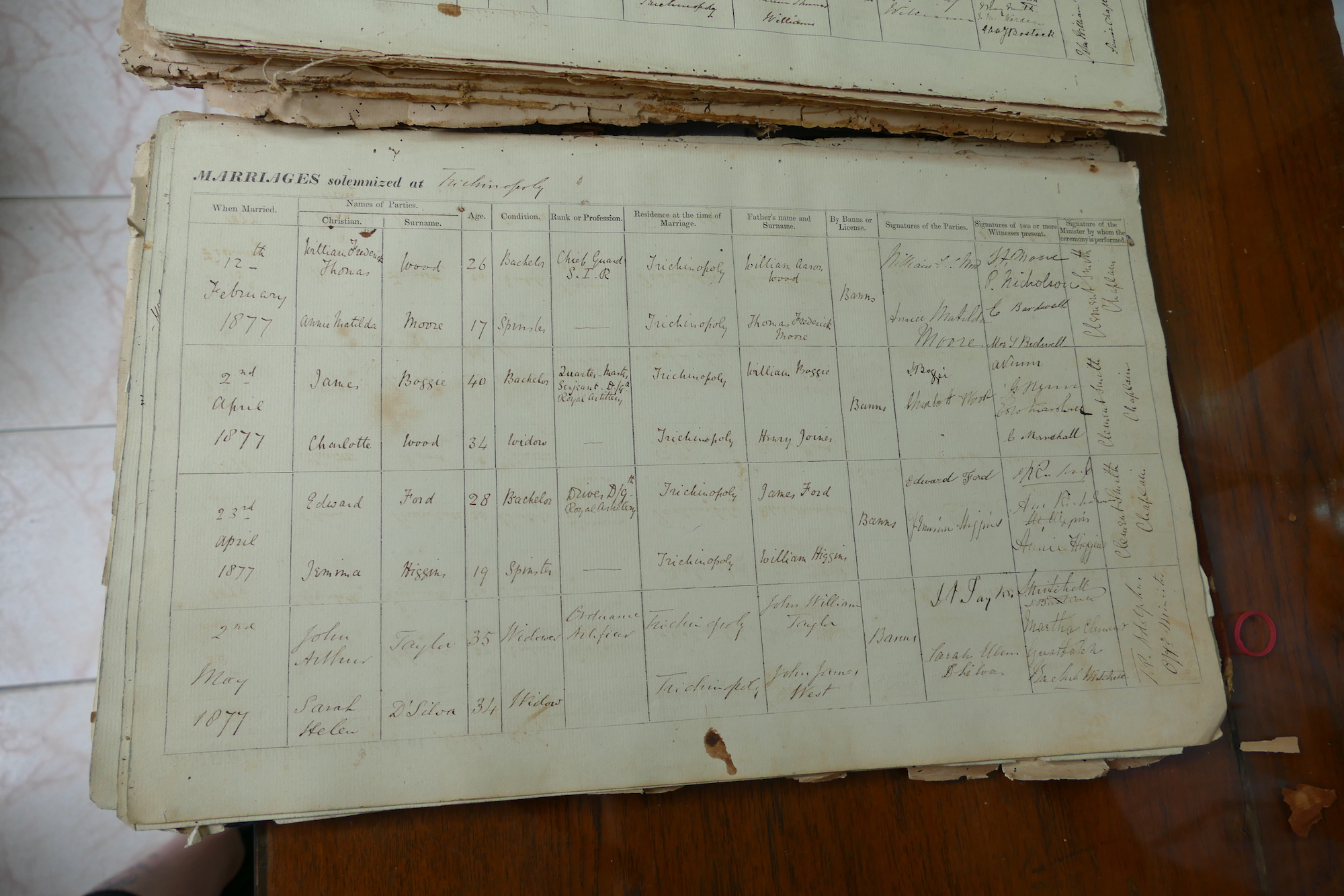 St Johns Church Trichinopoly Madras - Marriage Registers