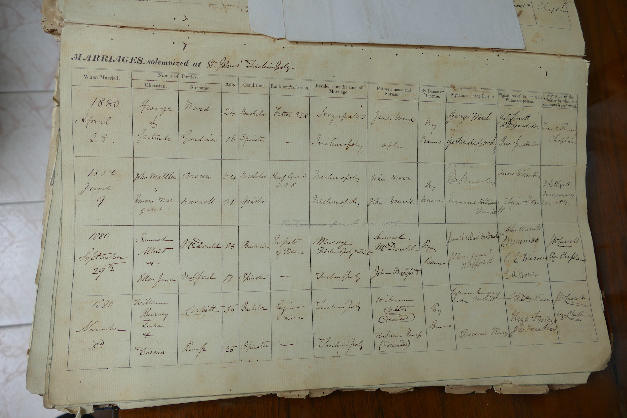 St Johns Church Trichinopoly Madras - Marriage Registers