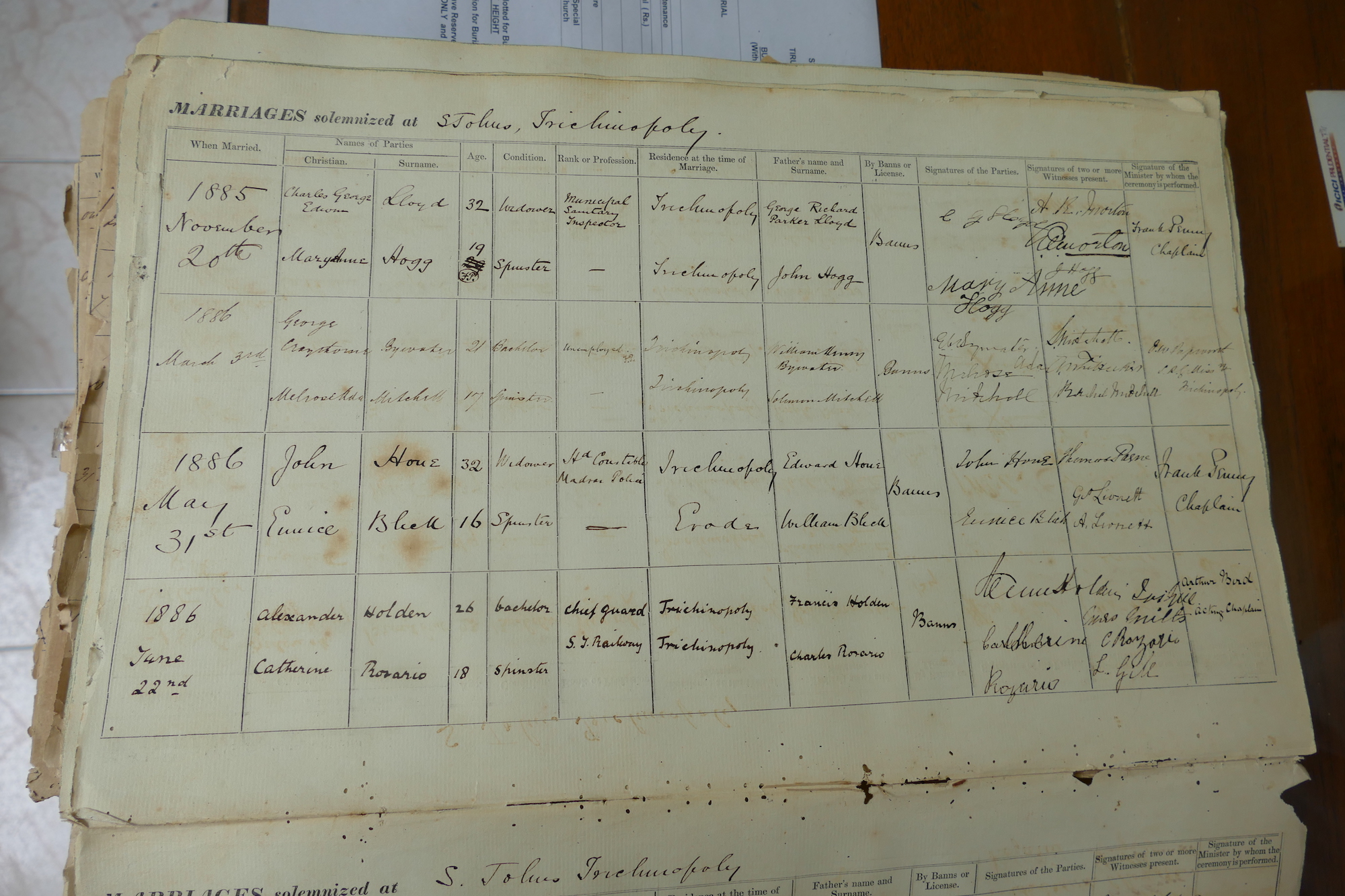 St Johns Church Trichinopoly Madras - Marriage Registers